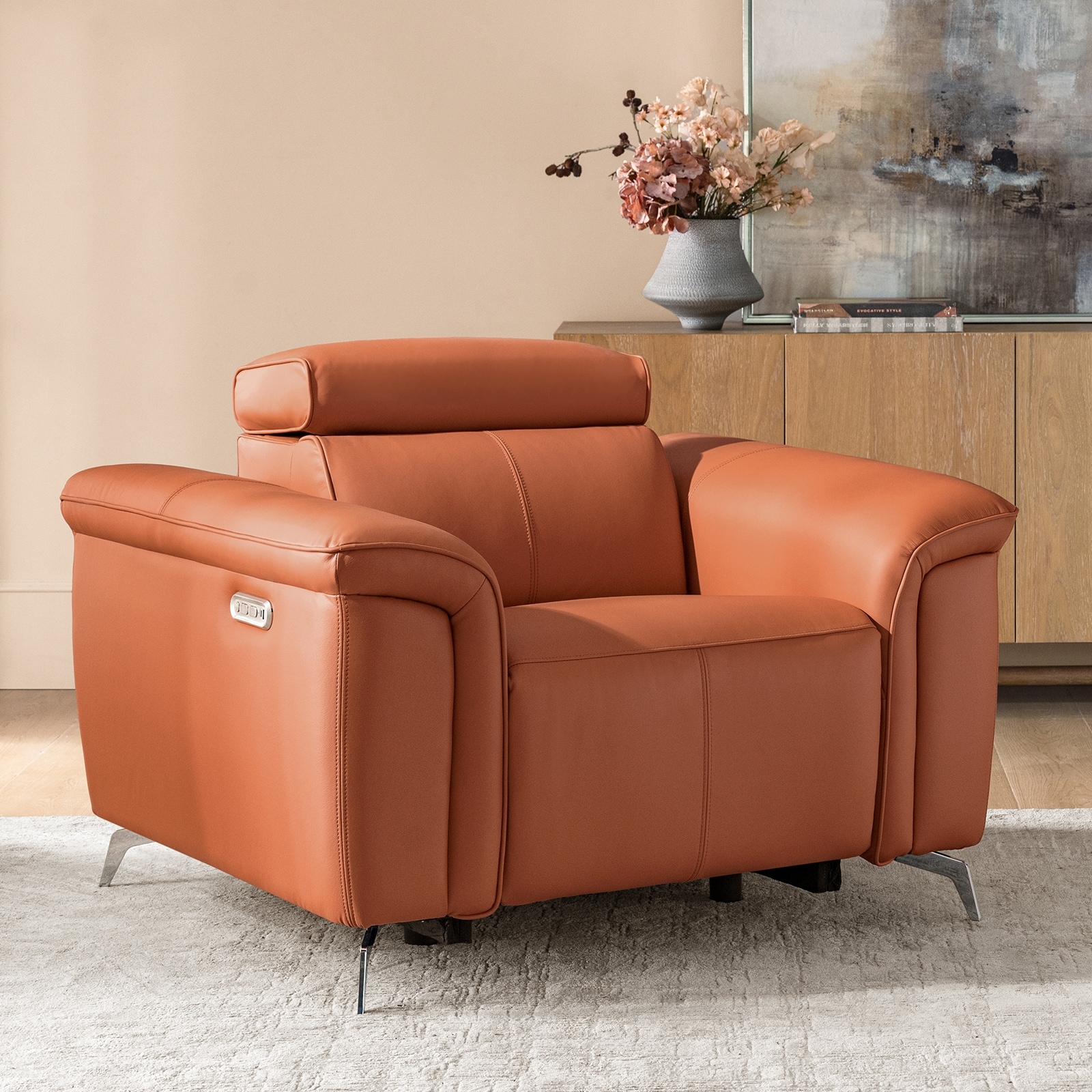 Jacindo 45.5"W Modern Genuine Leather Power Recliner with Adjustable Headrest and USB Port By HULALA HOME