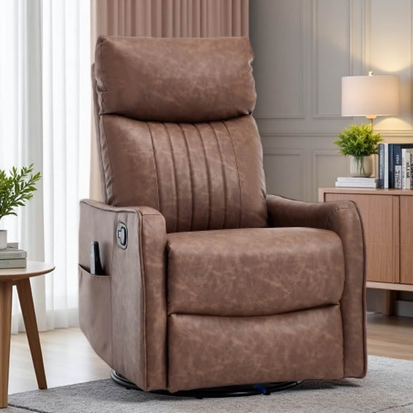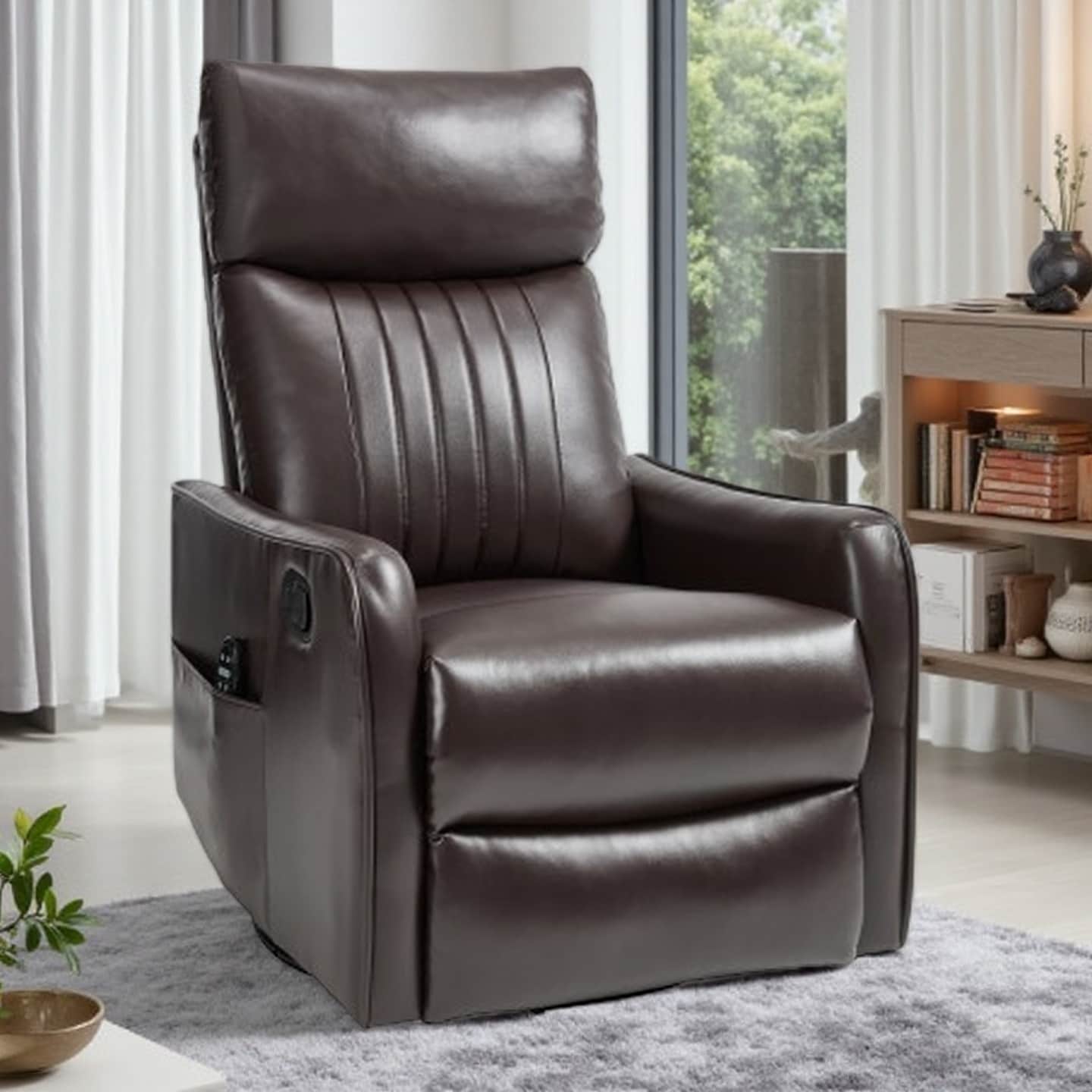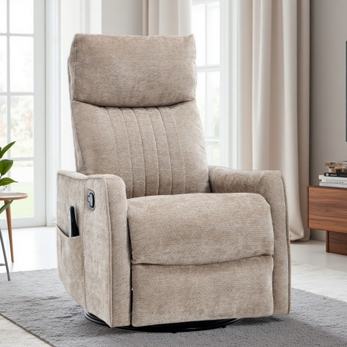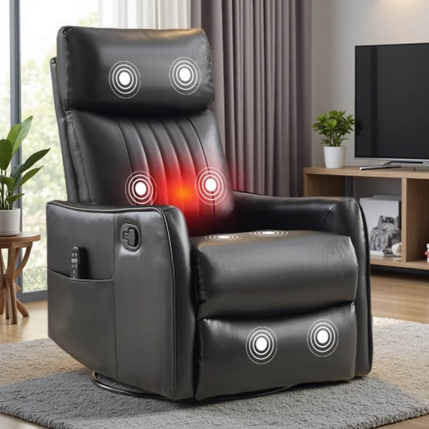 Manual Recliner Chair with 8-Point Massage, Lumbar Heat, 360° Swivel and Rocking Functions for Living Room Comfort