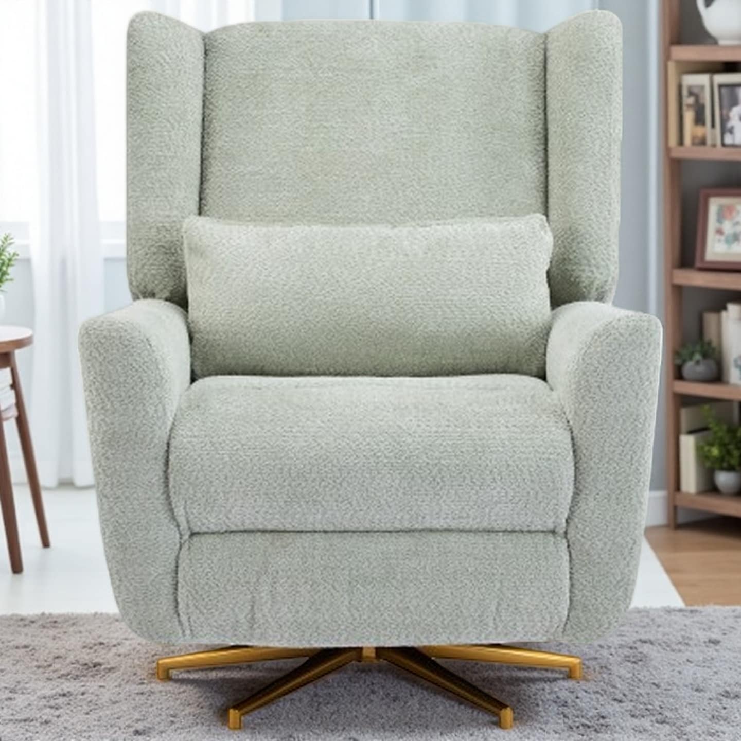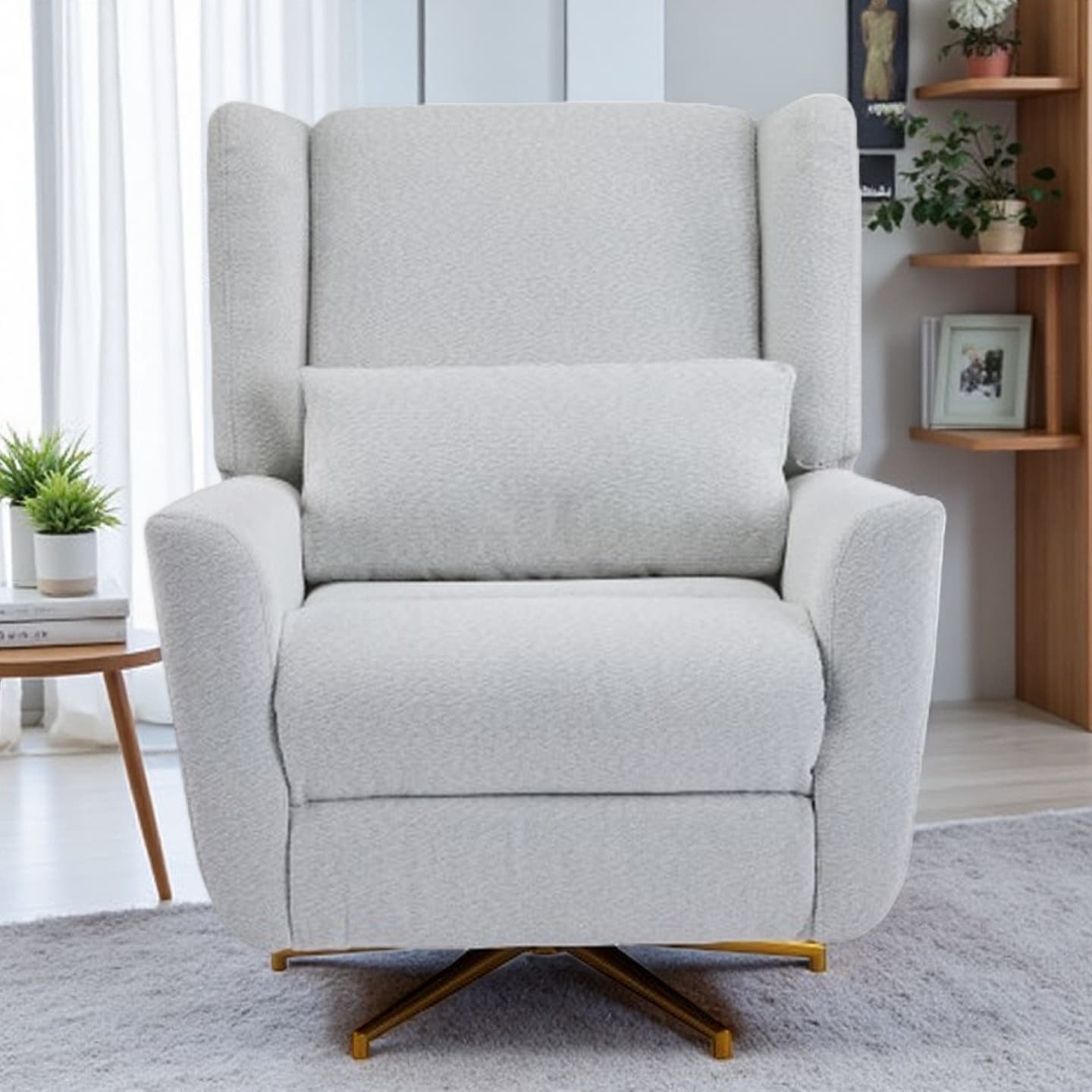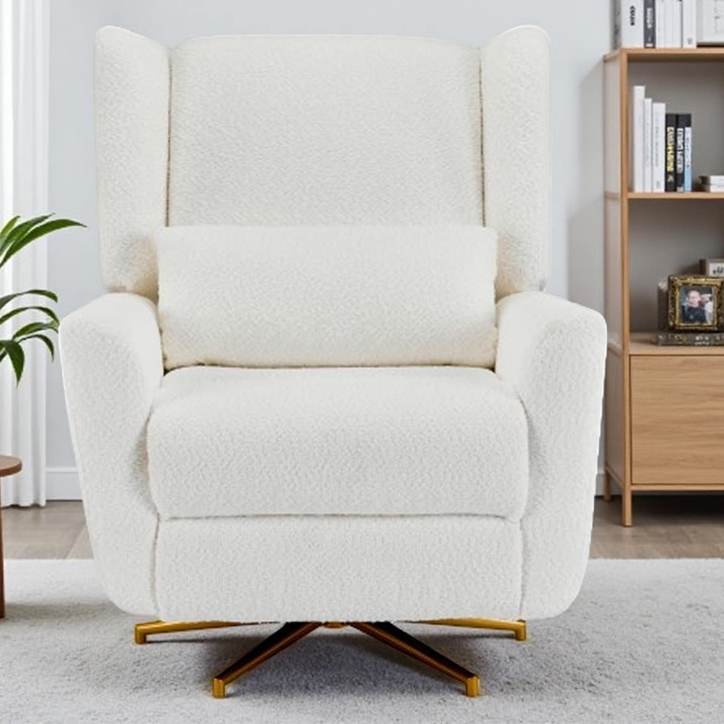 Electric Swivel Recliner Chair with Boucle Fabric, 360° Rotating Lounge Chair with Adjustable Footrest, Gold Star Metal Base