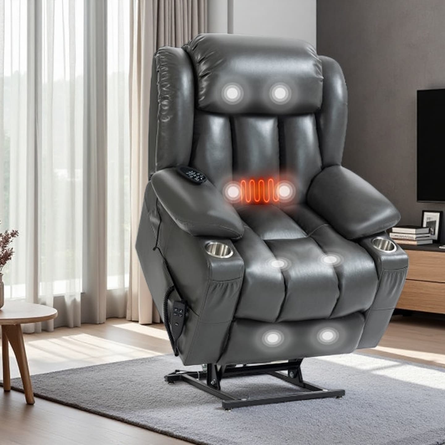 Dual Motor Power Lift Recliner Chair with 8-Point Vibration Massage, Lumbar Heat, Infinite Recline Positions, Side Storage