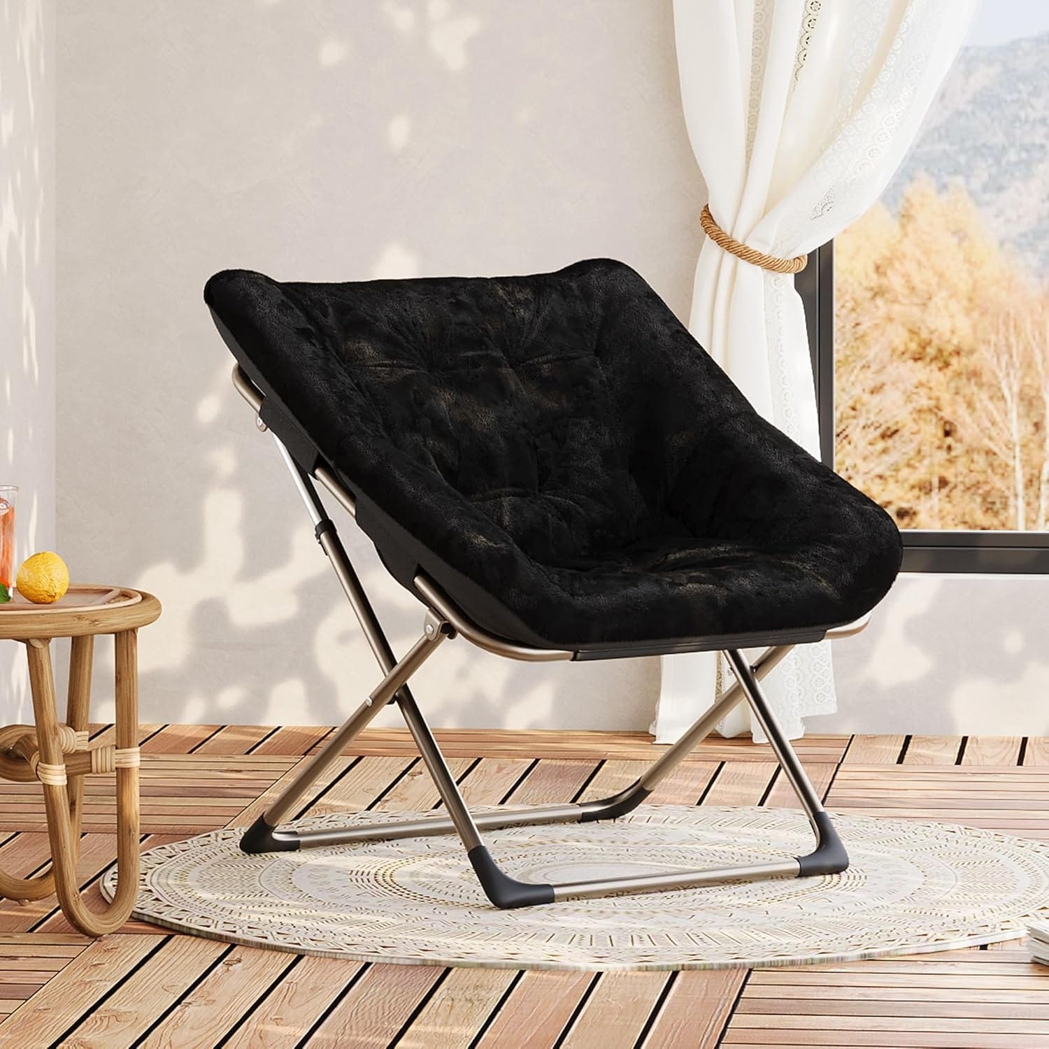 Oversized Collapsible Saucer Chair for Adults Soft Faux Fur Accent Lounge Chair