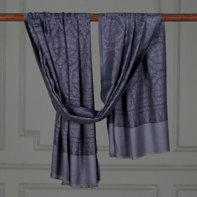 Slate Floral Damask,'Jacquard Modal Shawl with Floral Damask Motifs in Grey'
