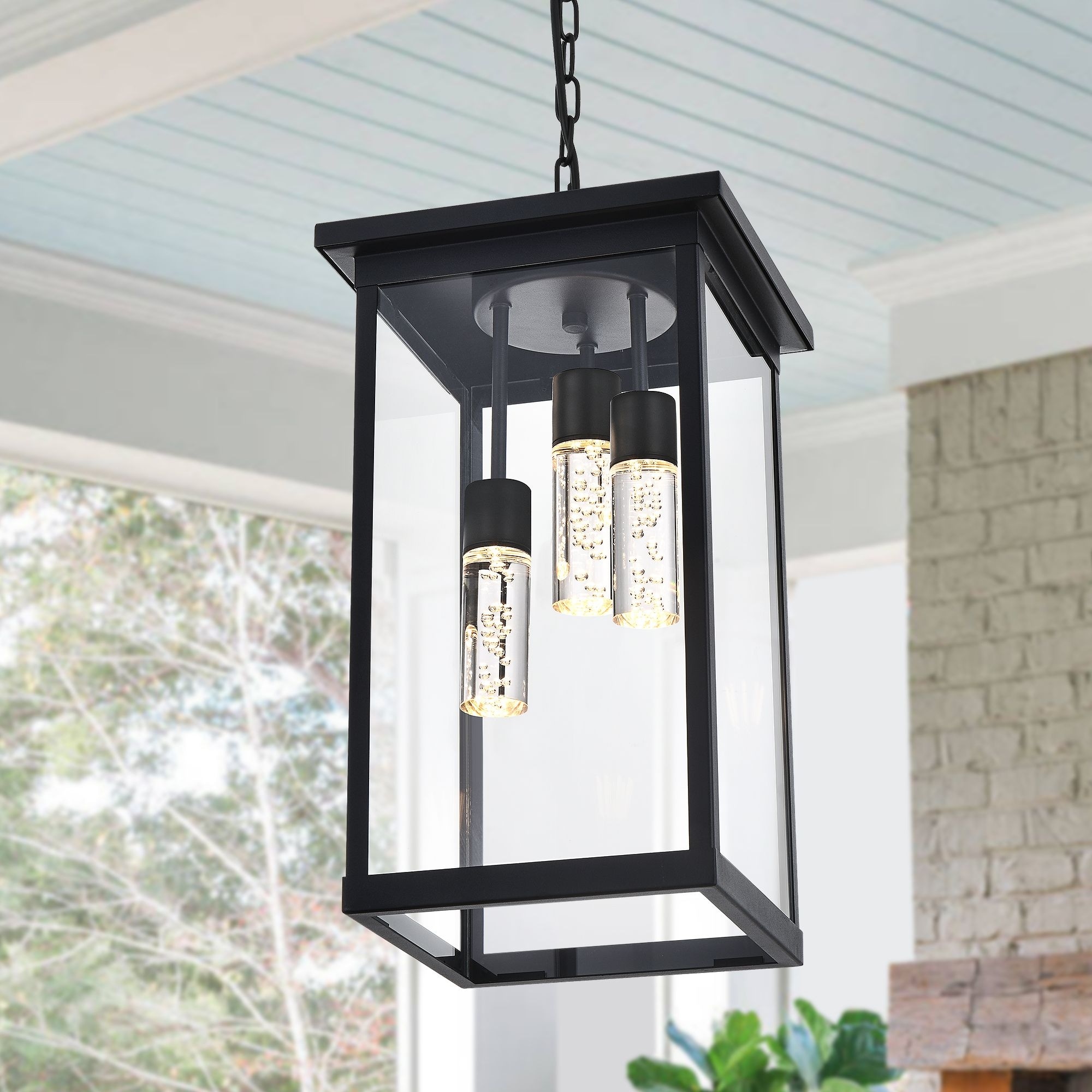 5CCT LED Large Outdoor Pendant Light Fixtures, LED Integrated Bulbs Included 3-Light Black Outdoor Hanging Lantern Light