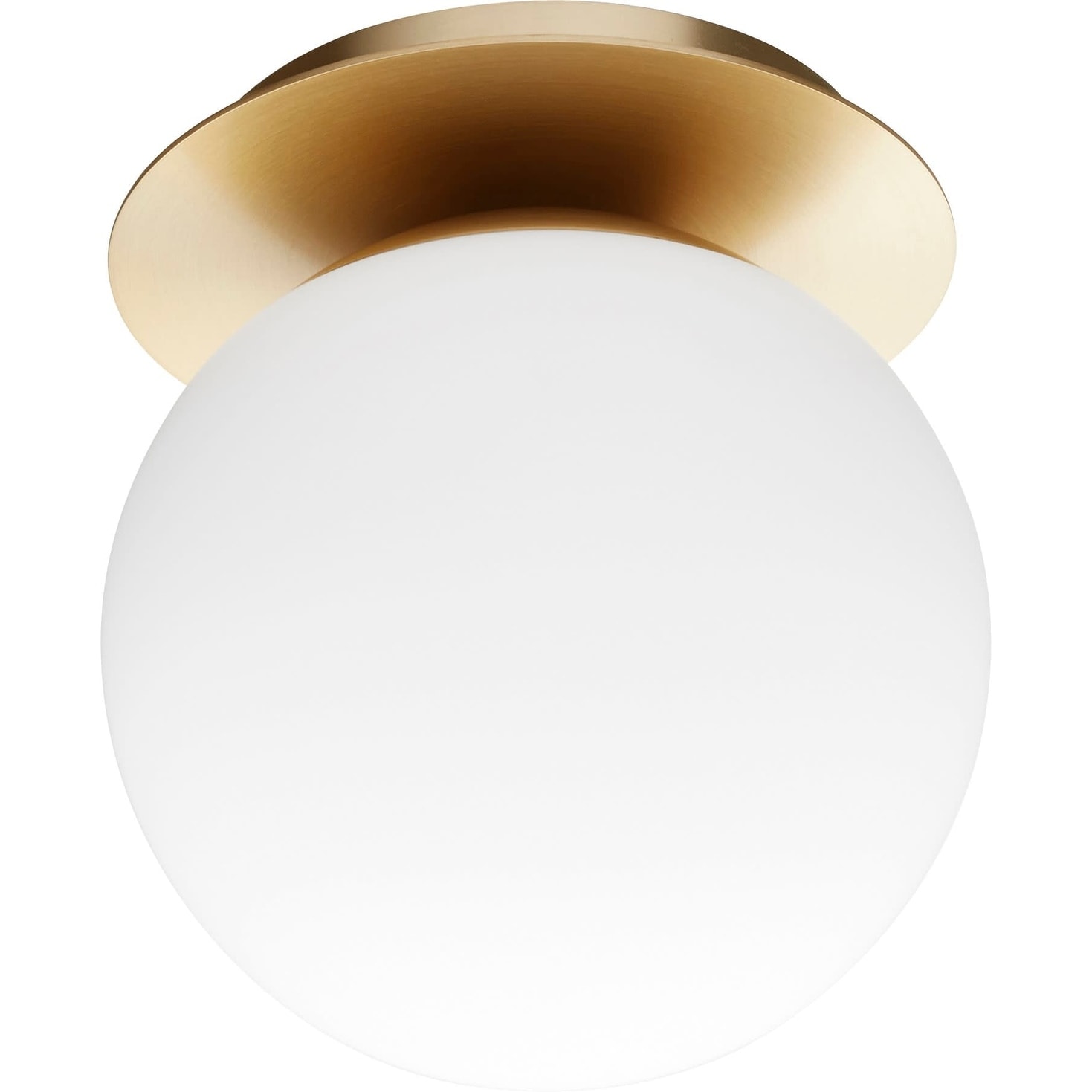 Brushed Brass 1-Light Semi Flush Mount Ceiling Light with White Globe Glass Shade