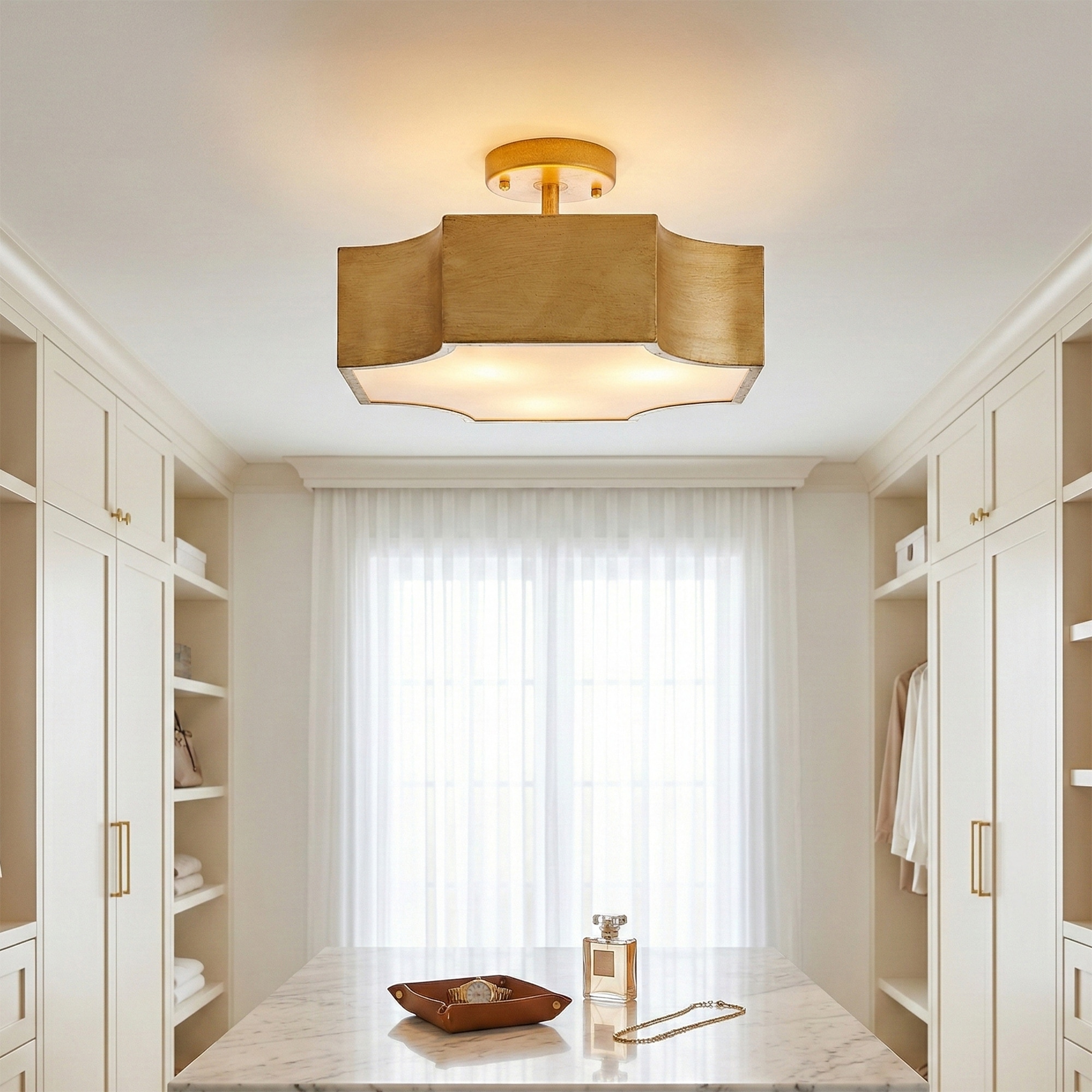 15" Antique Gold Metal 3-Light French Country Quatrefoil Semi-Flush Mount Ceiling Light