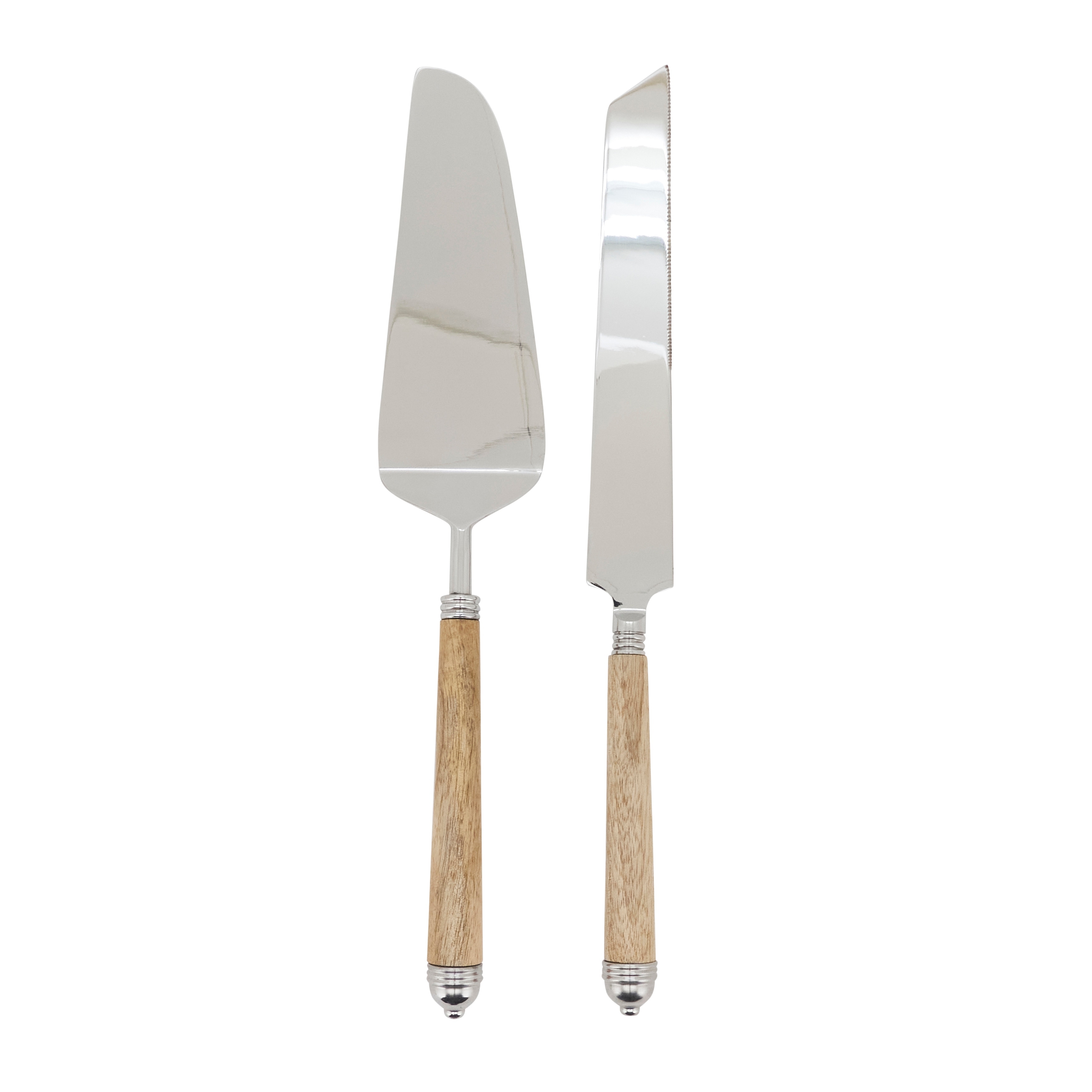 Mango Wood Handle Cake Server & Knife Set - Stainless Steel Dessert Tools for Cakes, Pies, and Holiday Entertaining