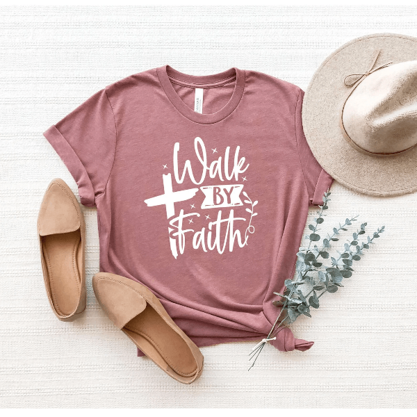 Walk By Faith Shirt Christian Bible Verse Tee Inspirational Jesus Faith Gift brown s sweatshirt