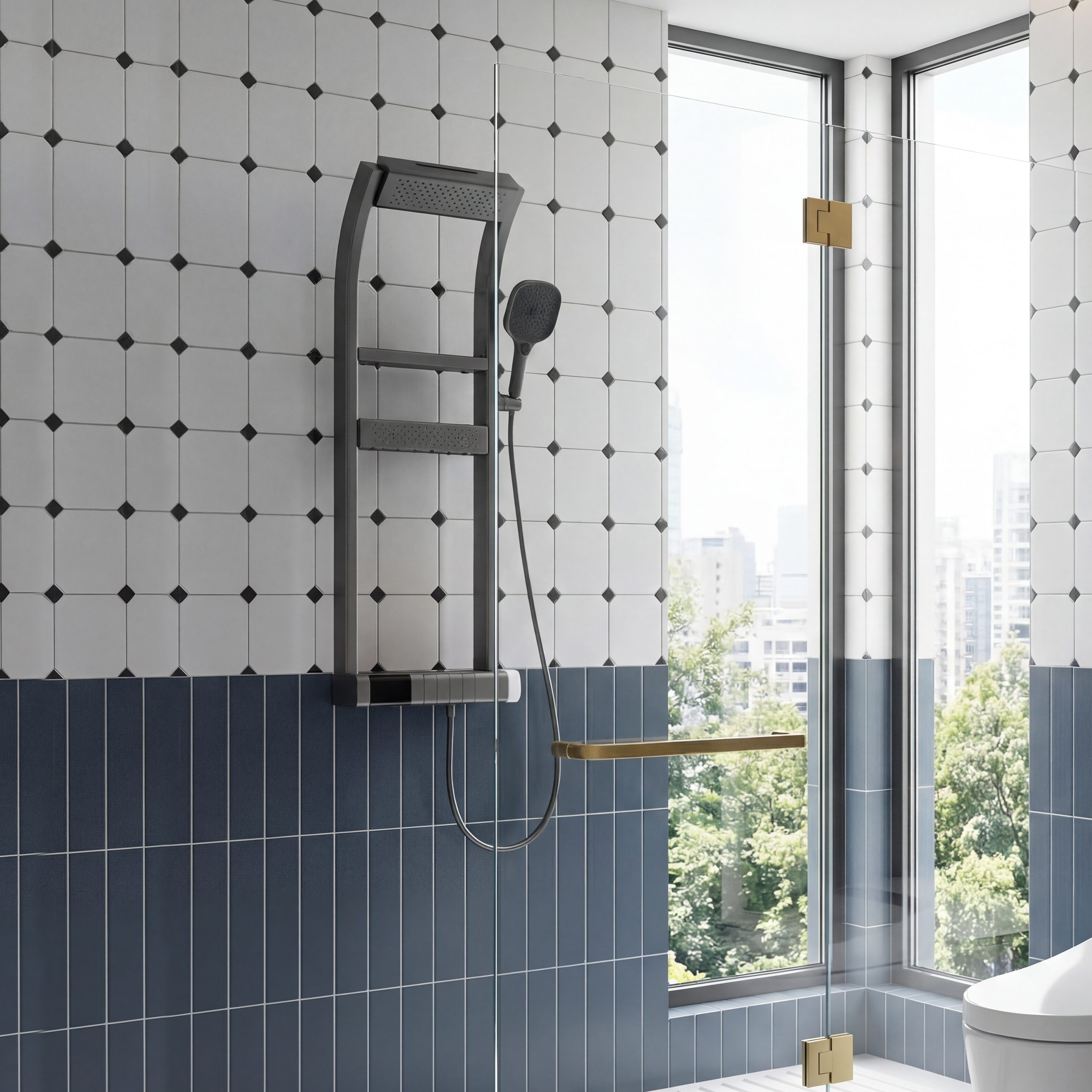 Modland Thermostatic Shower System with 4-mode sprayer LED Display Piano Key Design Shower Set Dual Storage Shelf