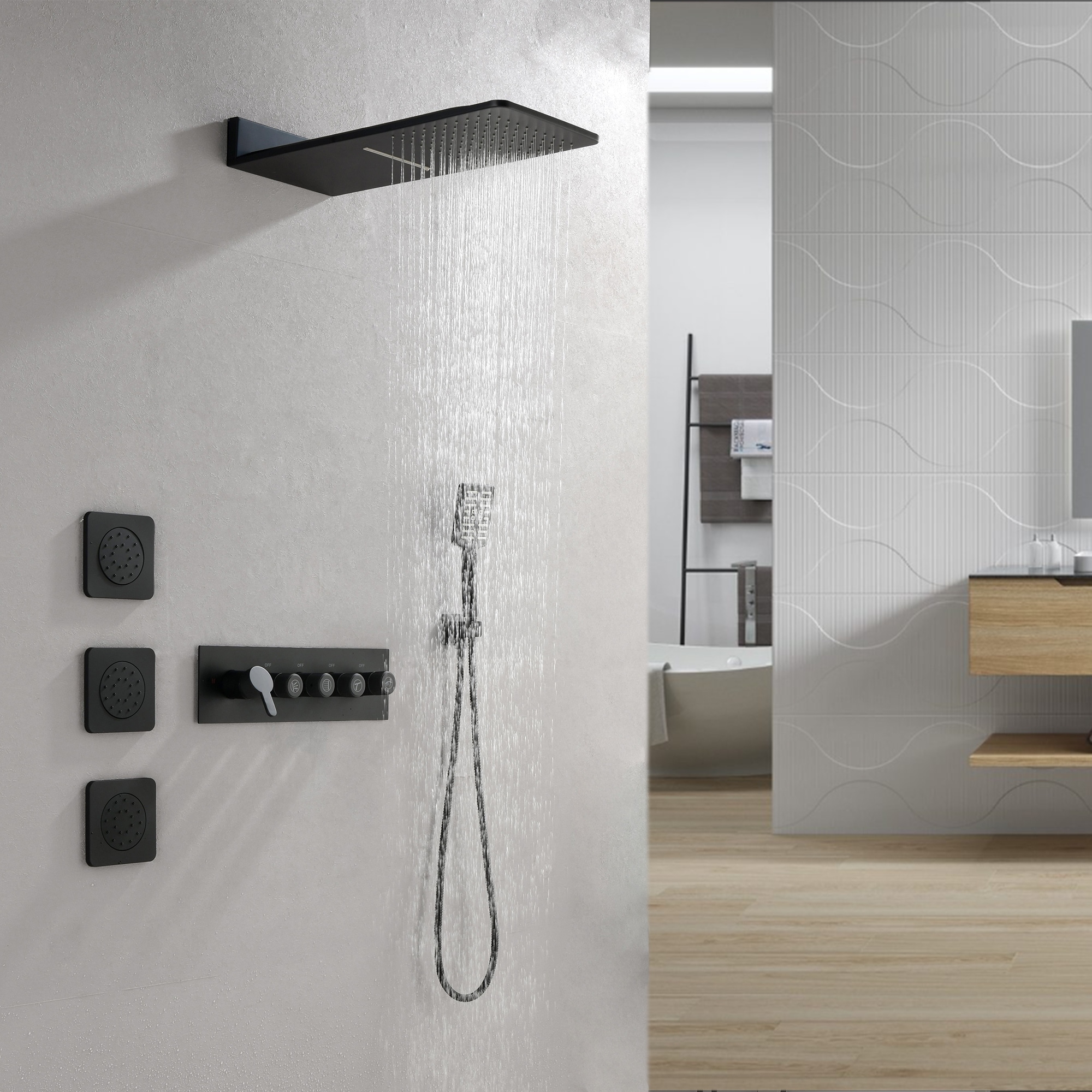 4-Mode Complete 24'' Rain and Waterfall Shower System with 3 Body Jets and Handheld Showerhead