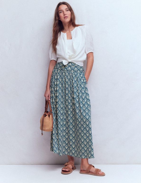 Rosaline Jersey Skirt, Petal Terrace - Blue - Boden Skirts