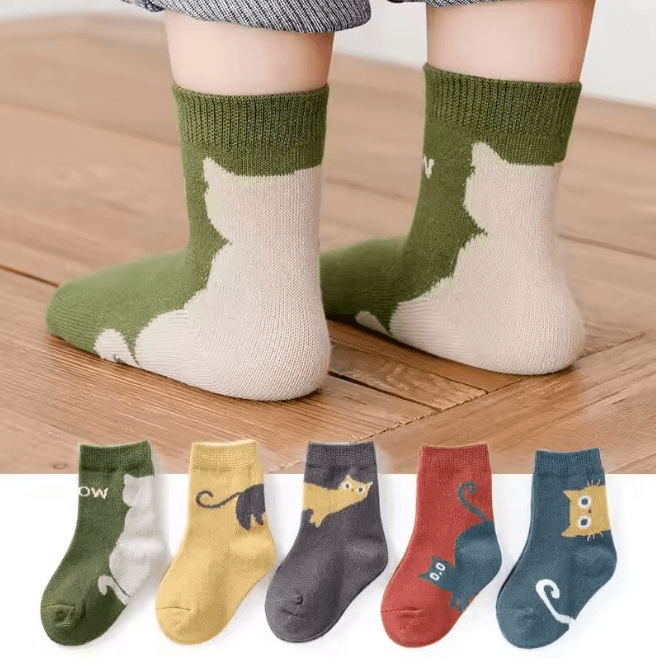 KittyCozy Four Season Baby Socks 5 Pair Cartoon Mid Tube Set a 4 6years
