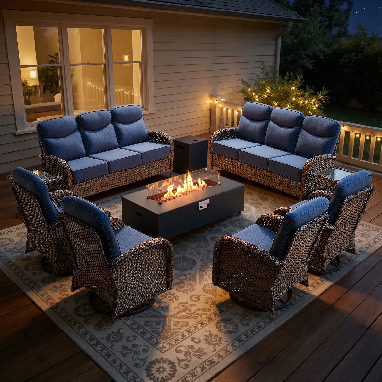 OVIOS 10 Pieces Outdoor Swivel Chair Set with Solar-Powered Table & 54" Fire Table