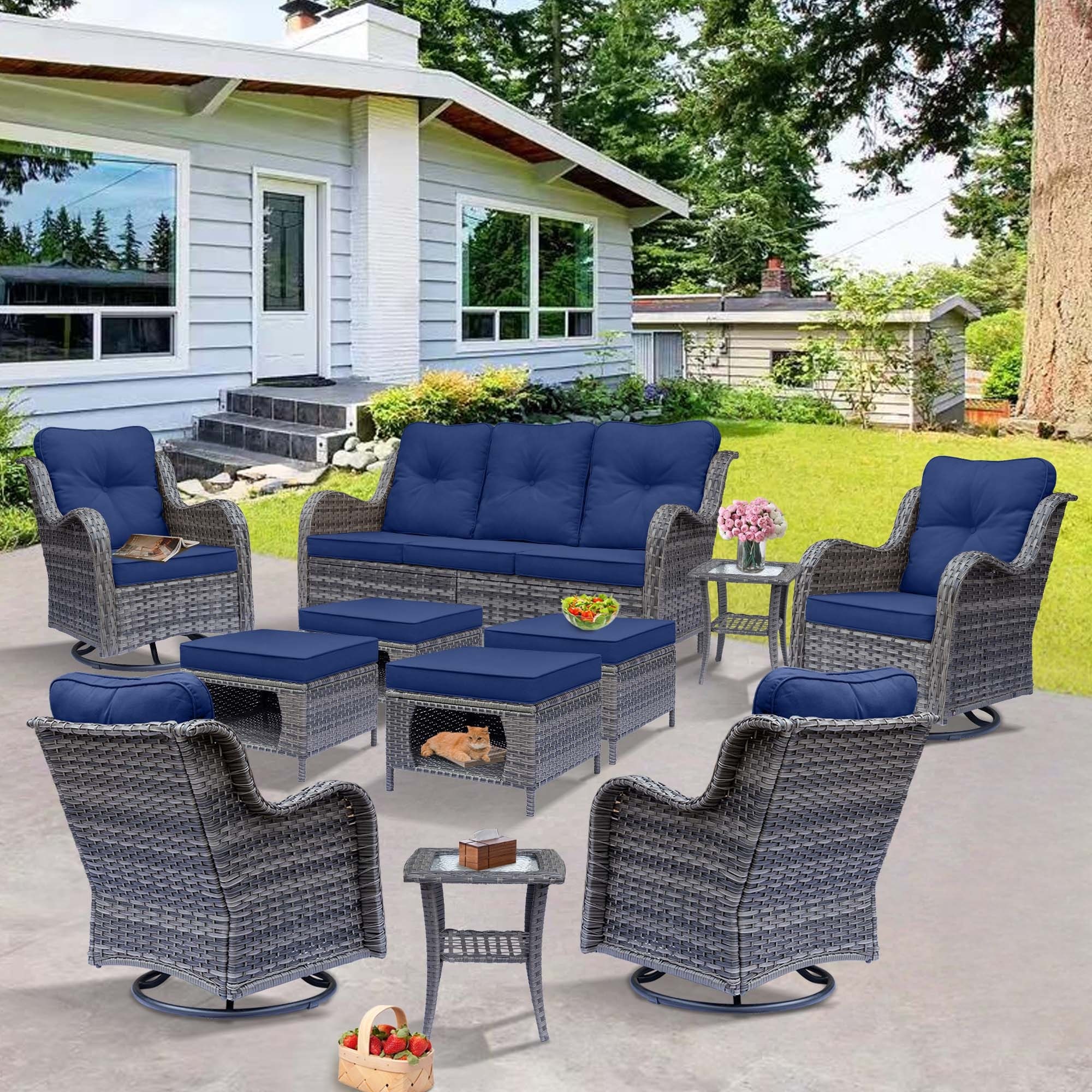 Luna 10-Piece Wicker Patio Conversation Set with Swivel Gliders and 6-Inch Thick Olefin Cushions