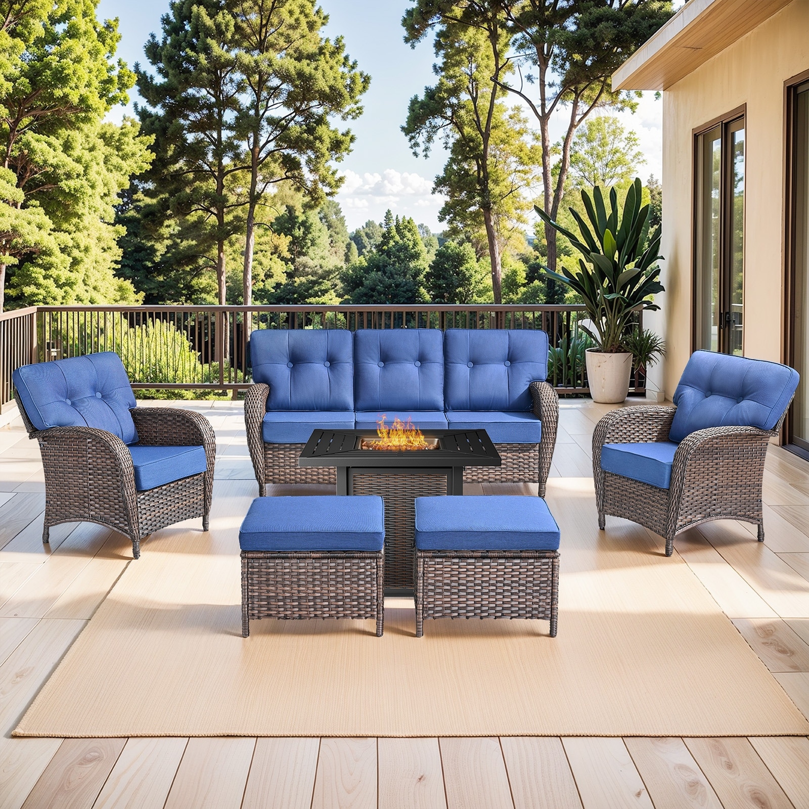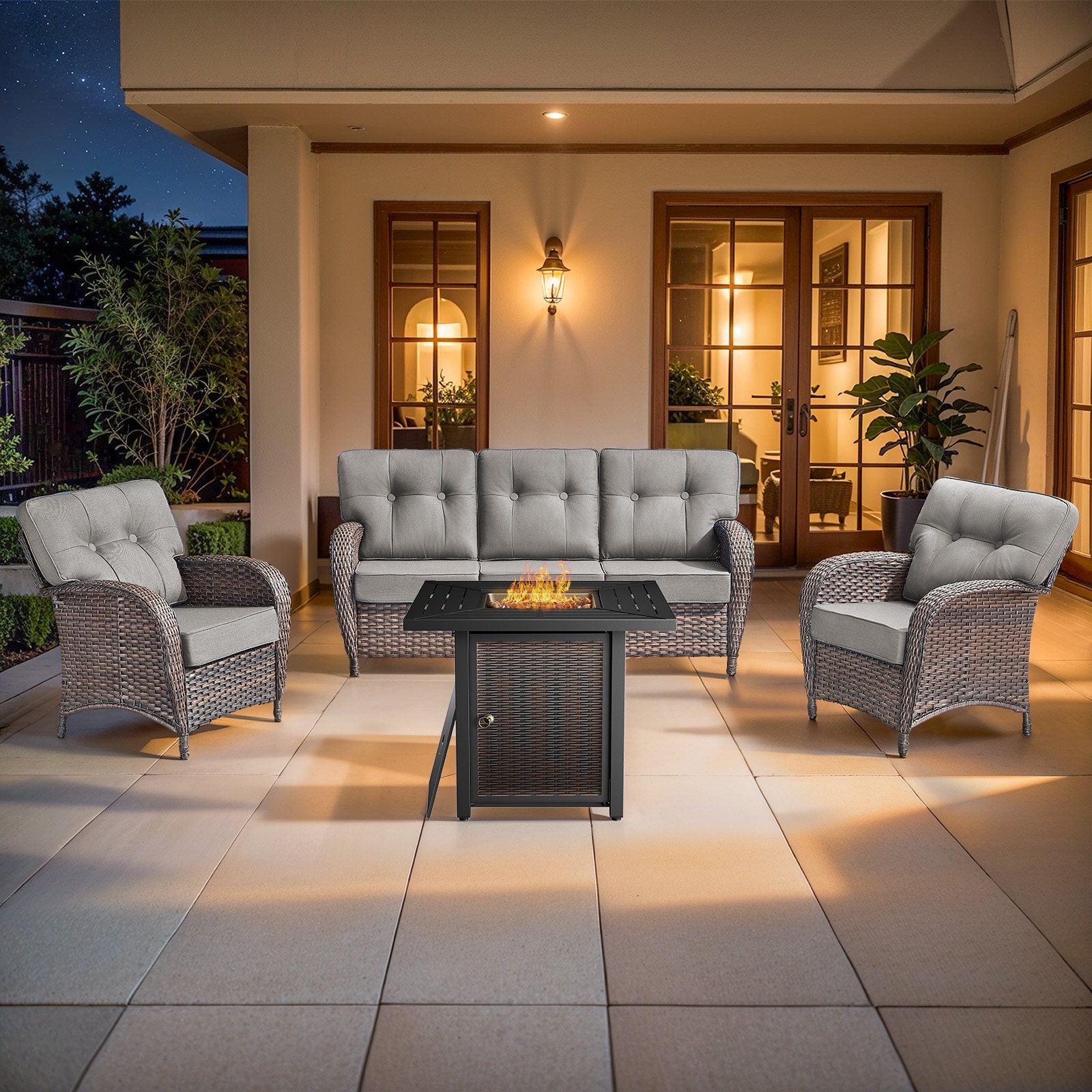 Pocassy Outdoor 30 In Fire Table with Sofa Patio Chair Set