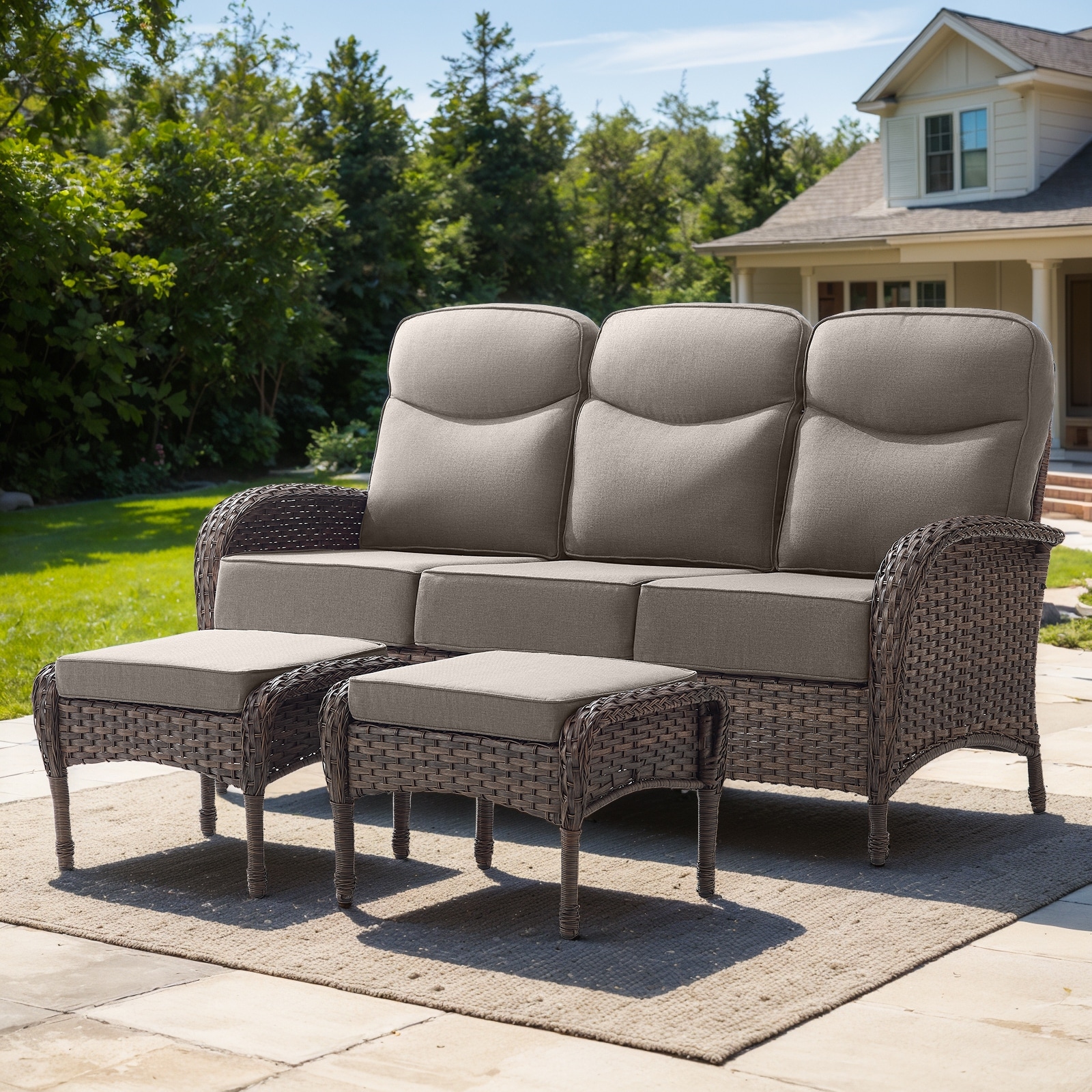 Pocassy Outdoor Wicker Patio Sofa with Swivel Chair Ottoman Sets