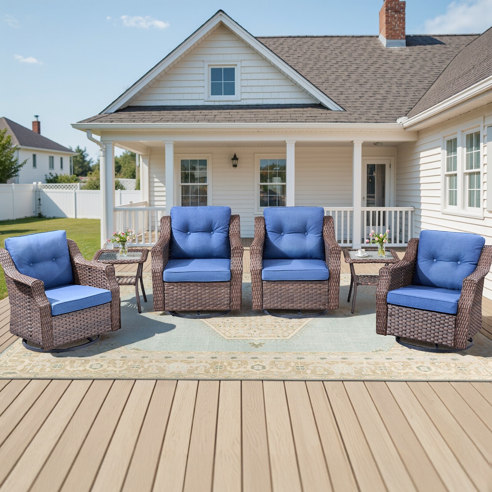 Pocassy 6-Piece Patio Swivel Chair with Side Table