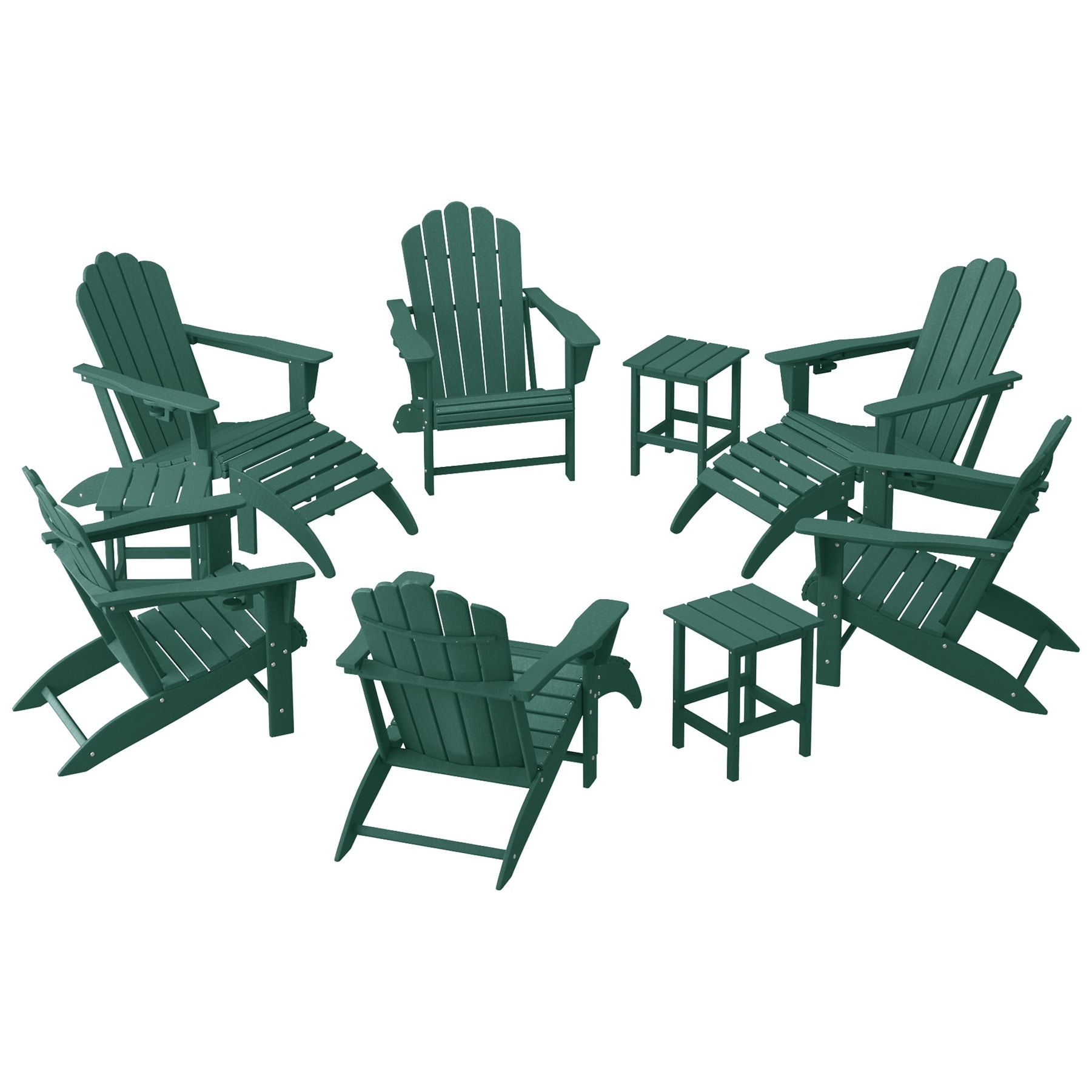 Aderson Outdoor Poly Adirondack Chair With Ottoman And Side Table 12-Piece Set