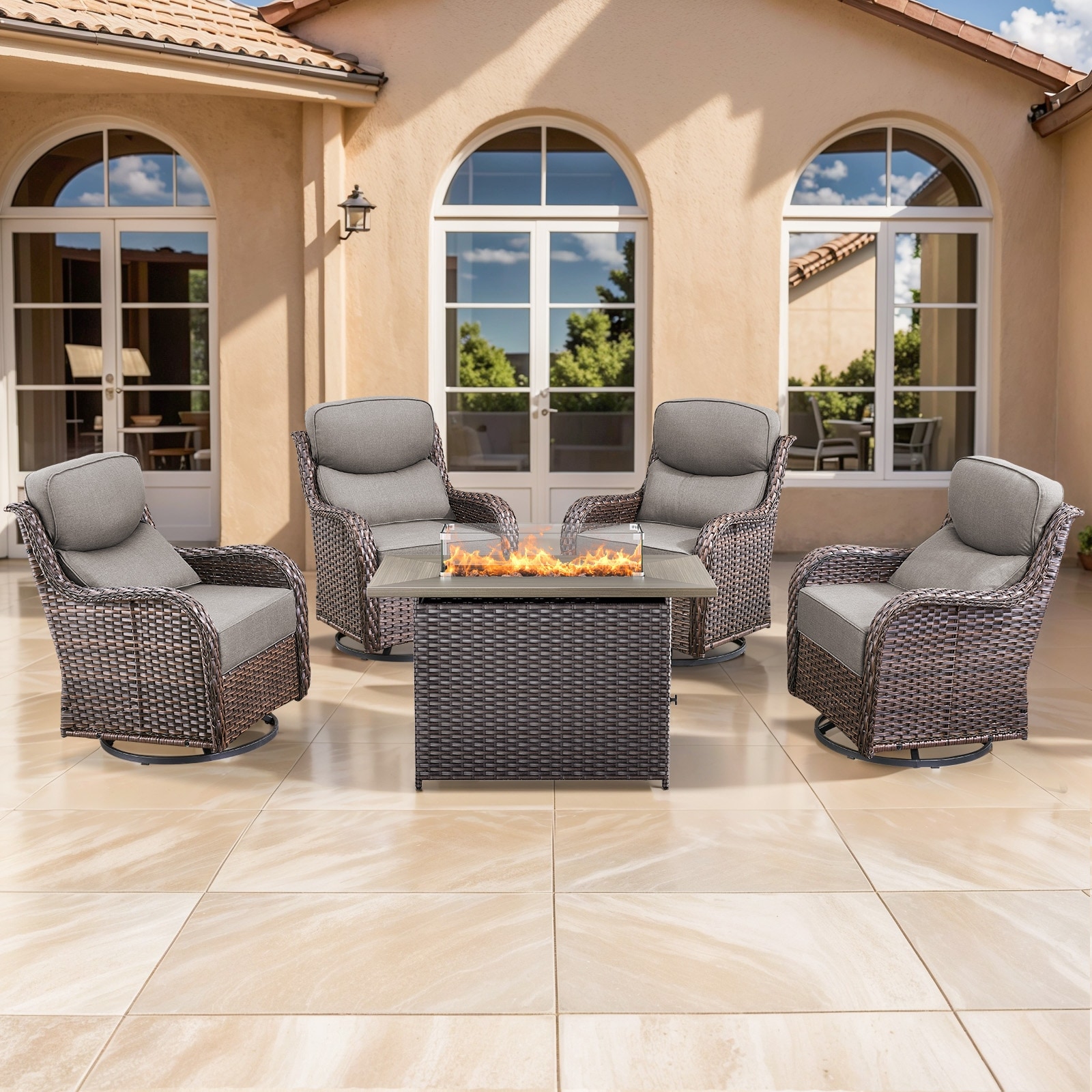 5 Pieces Fire Pit Table with Sofa Swivel Chair Set