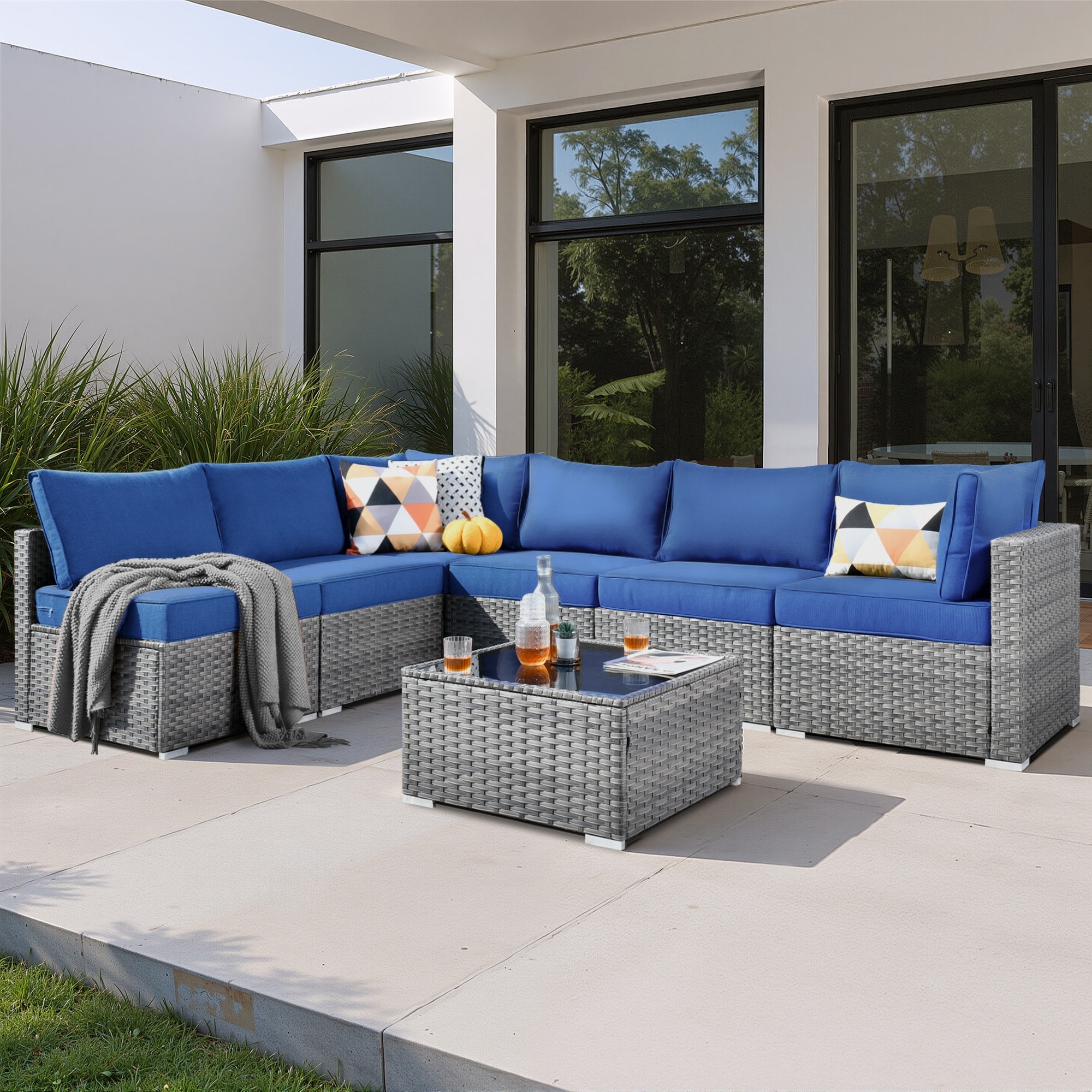 XIZZI 7-Piece Outdoor Patio Wicker Sectional Set with Coffee Table