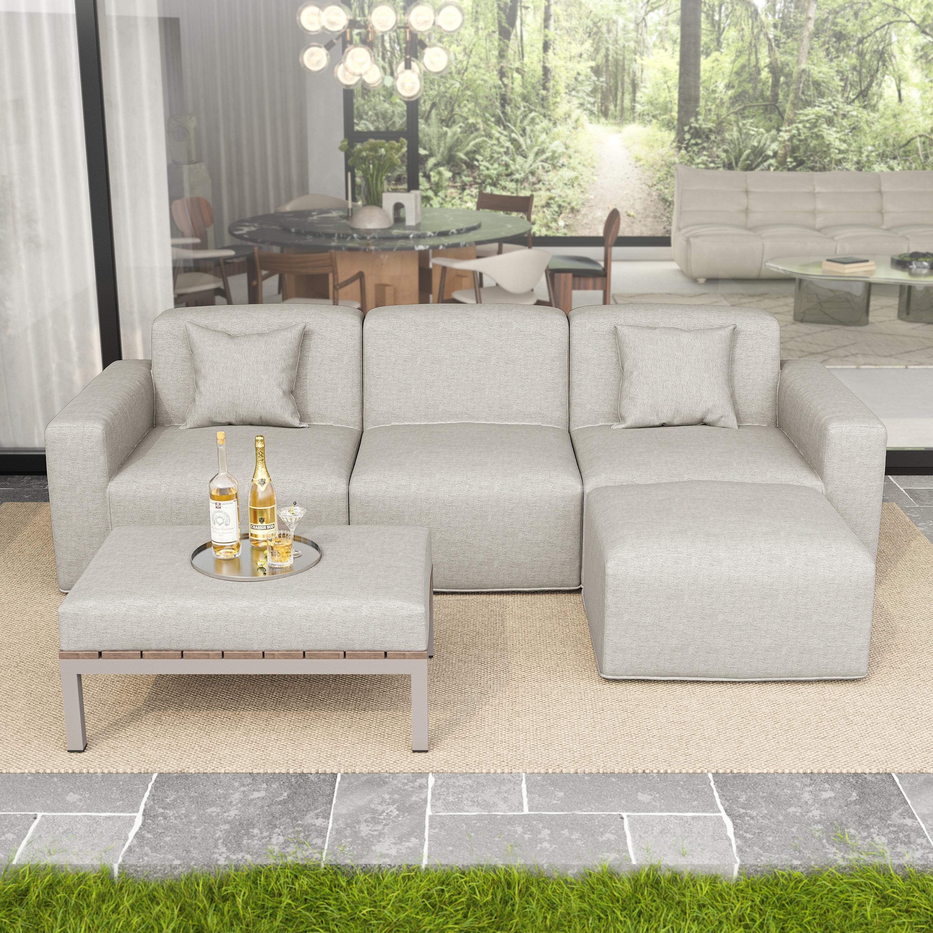 5-Piece Modular Sets Sectional Sofa Set Patio Conversation Sets