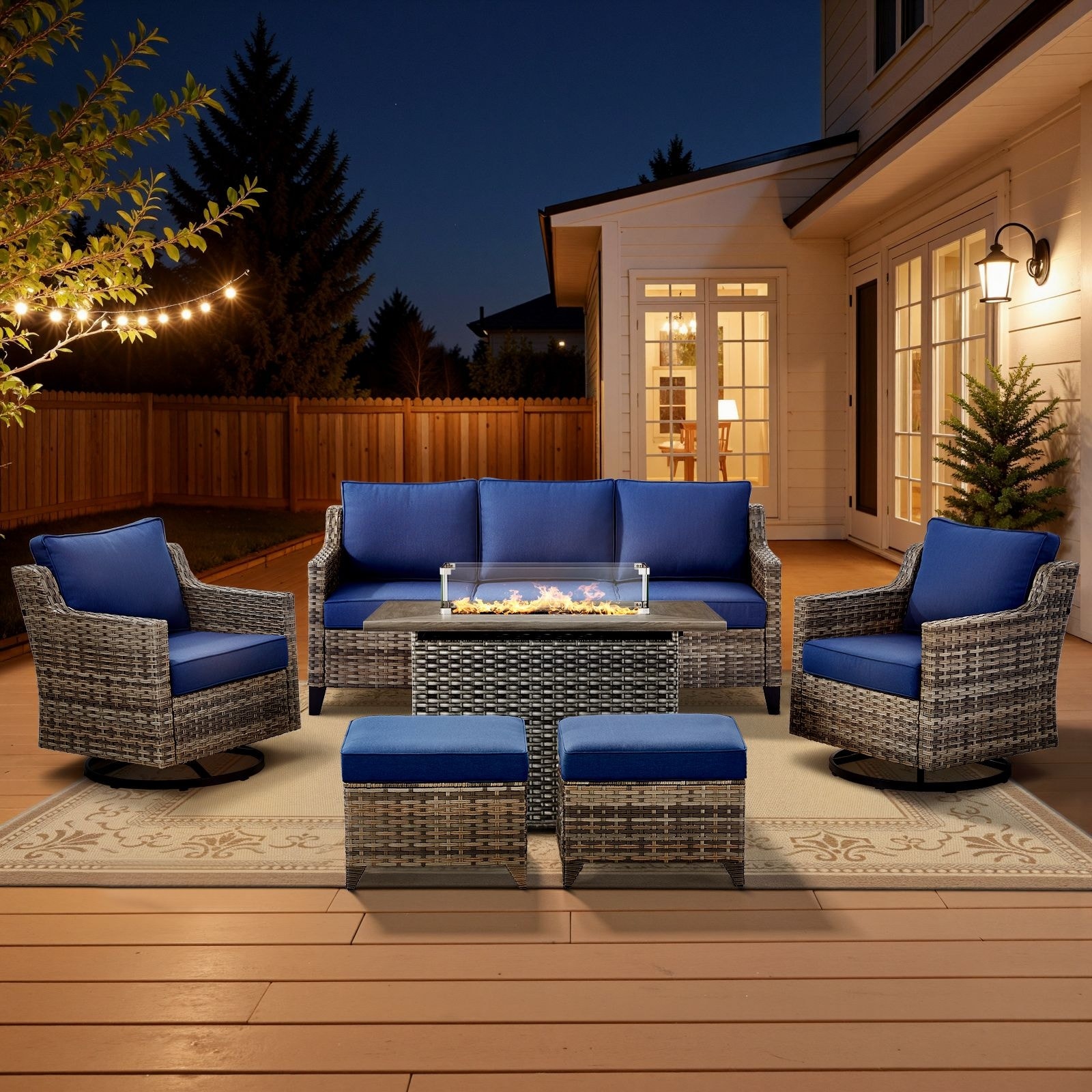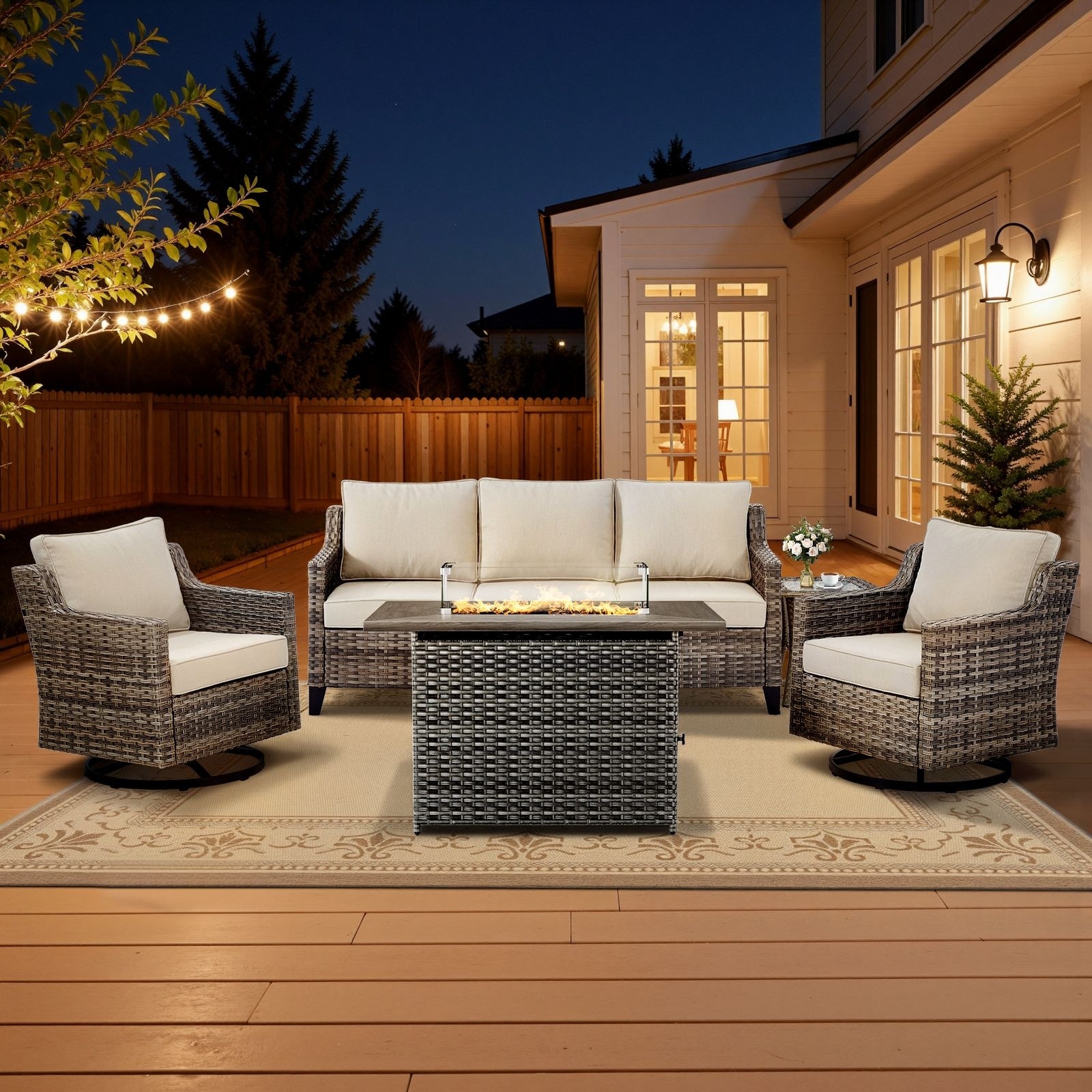 Gymojoy 5-7 Person Outdoor Wicker Patio Conversation Furniture Sofa Set With Fire Pit Table & Swivel Chairs