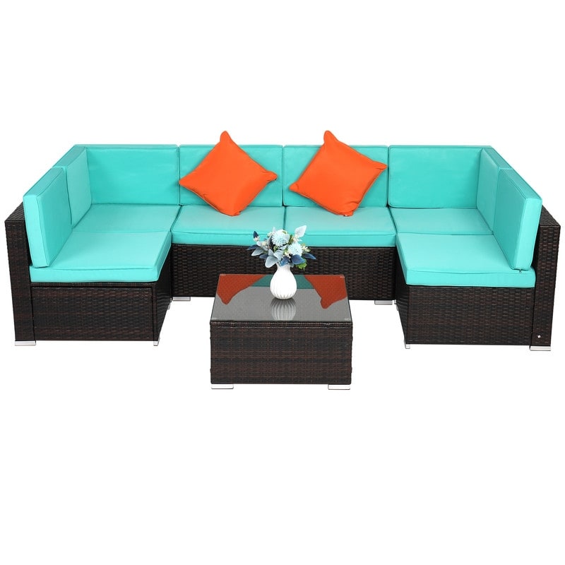 7-Piece Outdoor Rattan Wicker Sectional Sofa Furniture Set with Cushion