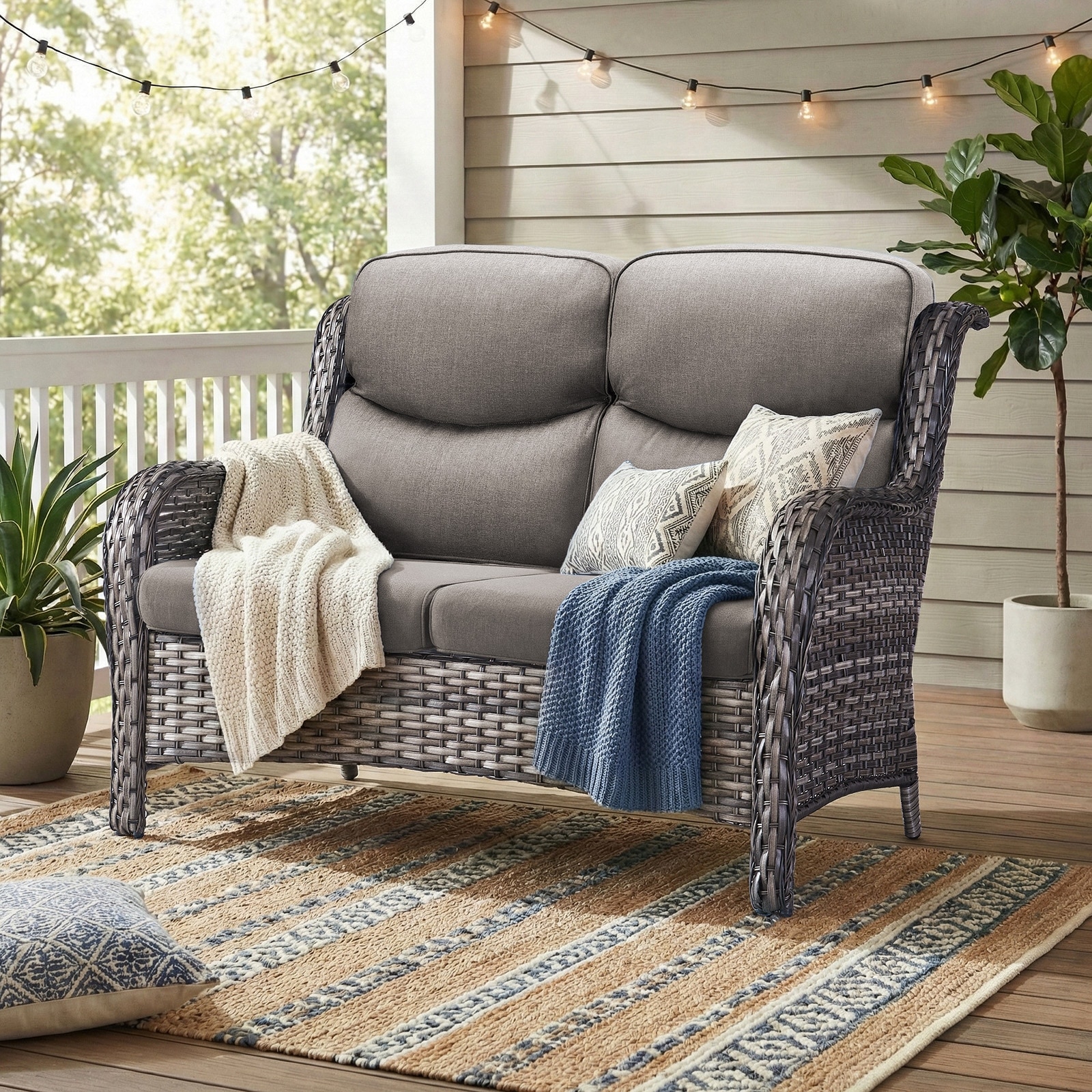 Pocassy Outdoor Patio Loveseat All-Weather Wicker Loveseat with Cushions