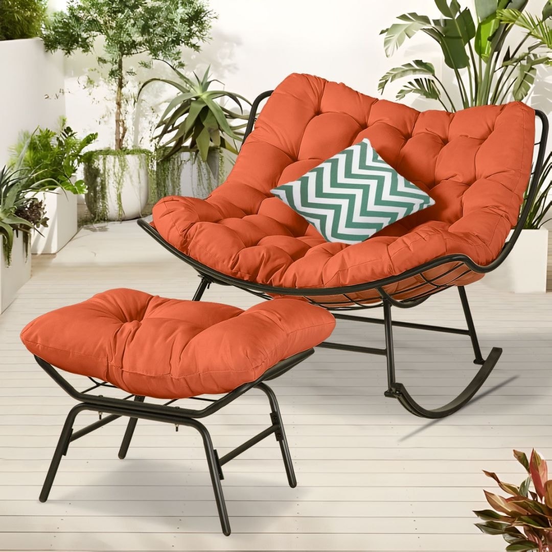 Outdoor & Indoor Rocker Recliner Egg Reading Chair with Large Cushions