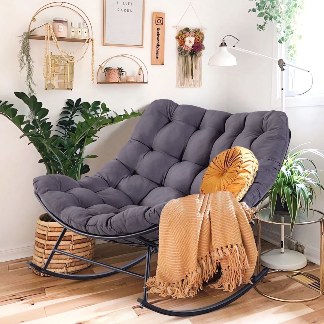 Outdoor & Indoor Rocker Recliner Egg Reading Chair with Large Cushions