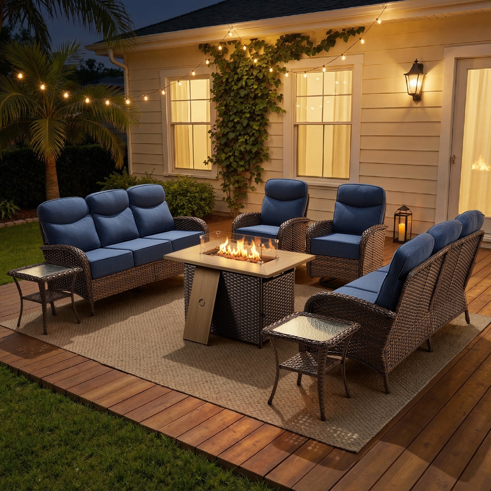 Gymojoy 7-Piece Fire Pit Outdoor Wicker Conversation Furniture Set with 6" Cushions, All-Weather Comfort