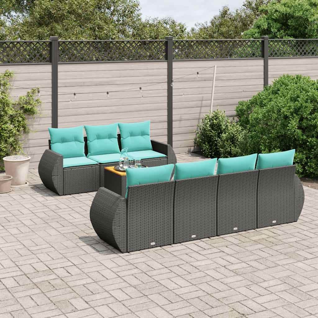 vidaXL 8 Piece Patio Sofa Set with Cushions Black Poly Rattan - 21.7x 24.4x 27.2