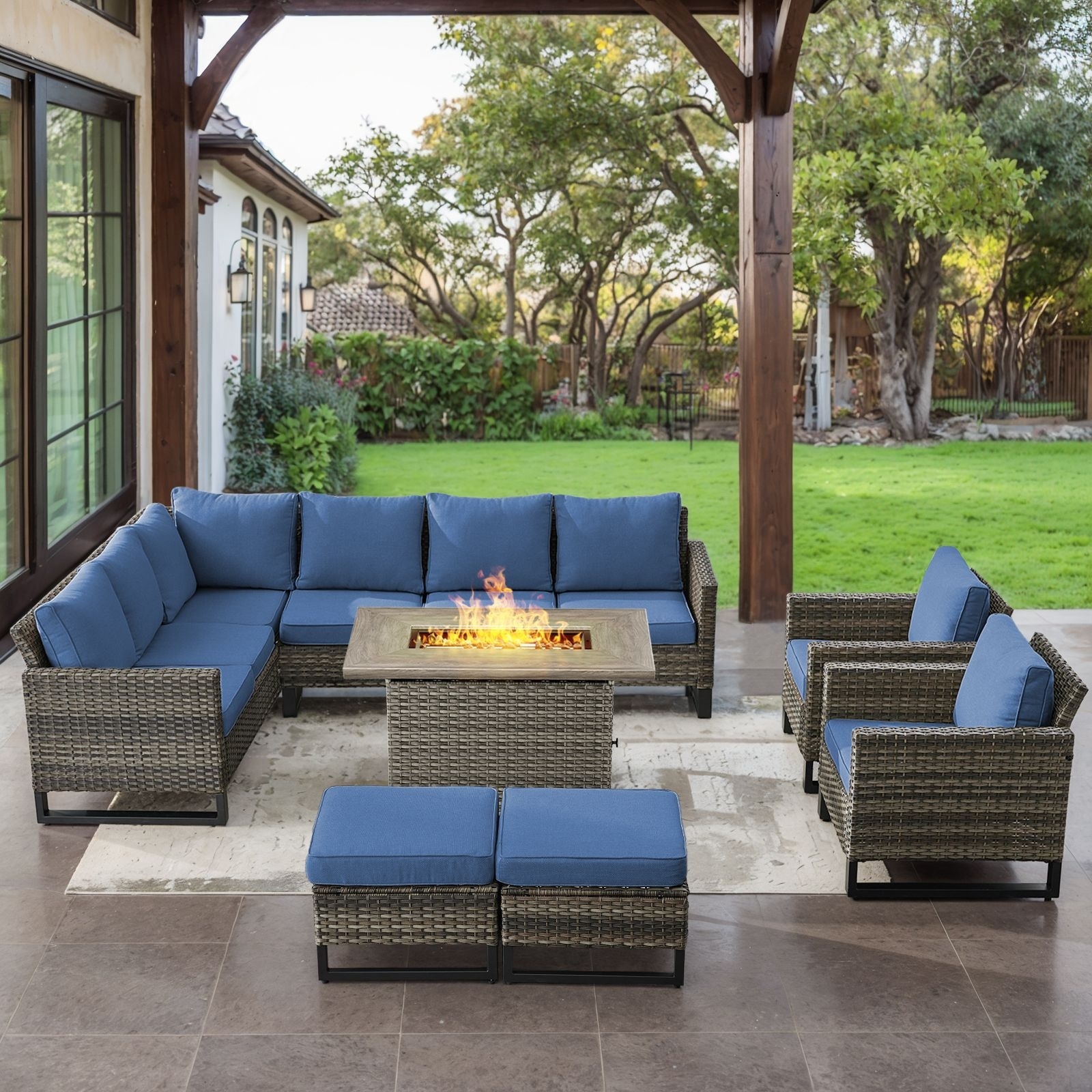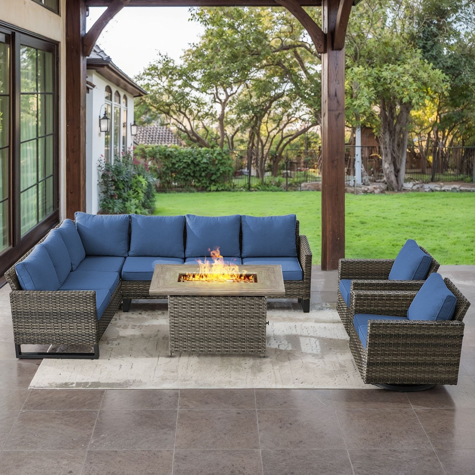 Pocassy 5 Pieces Outdoor Swivel Chair with Fire Pit Table Set