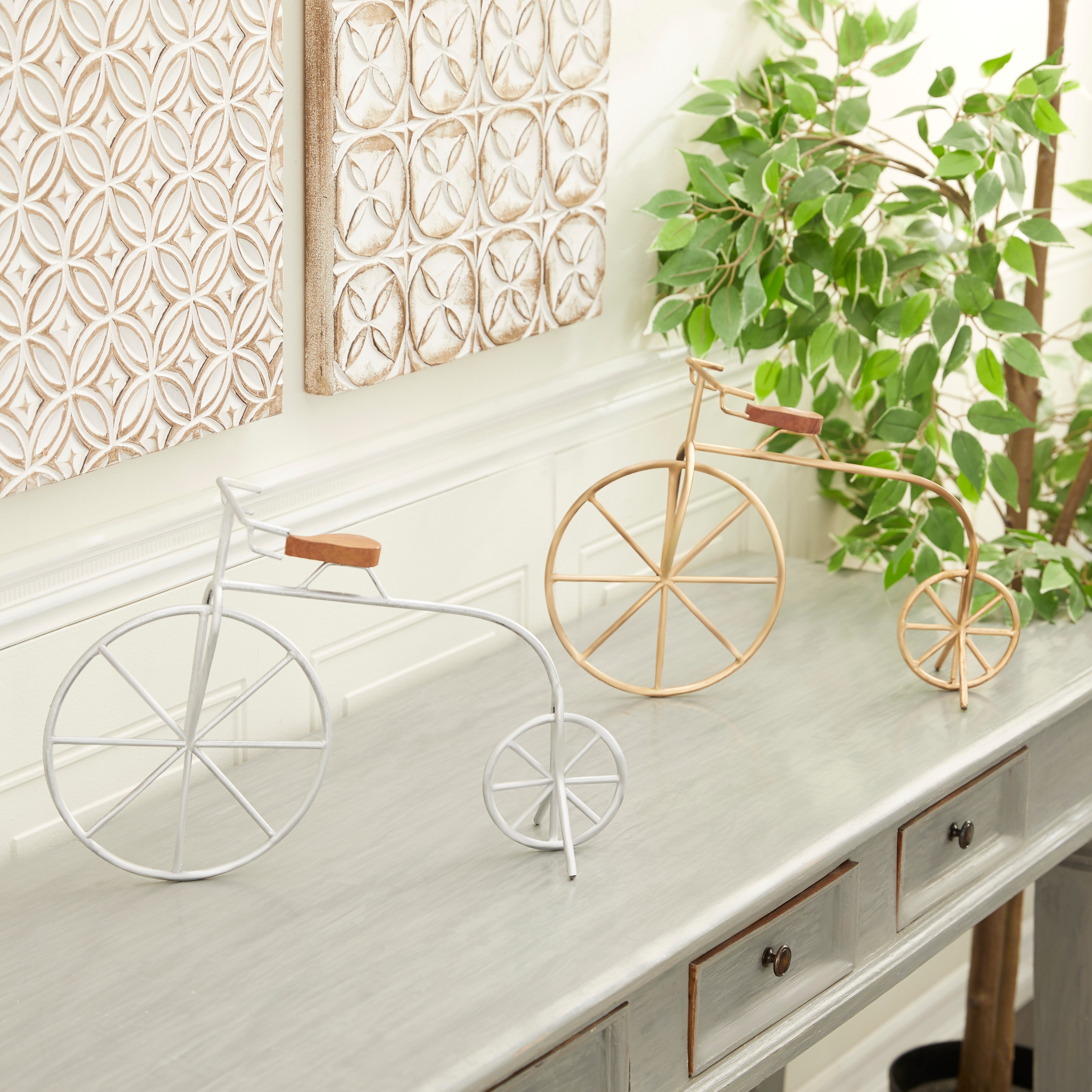 Silver Iron Contemporary Sculpture Bicycle (Set of 2) - 16 x 5 x 11