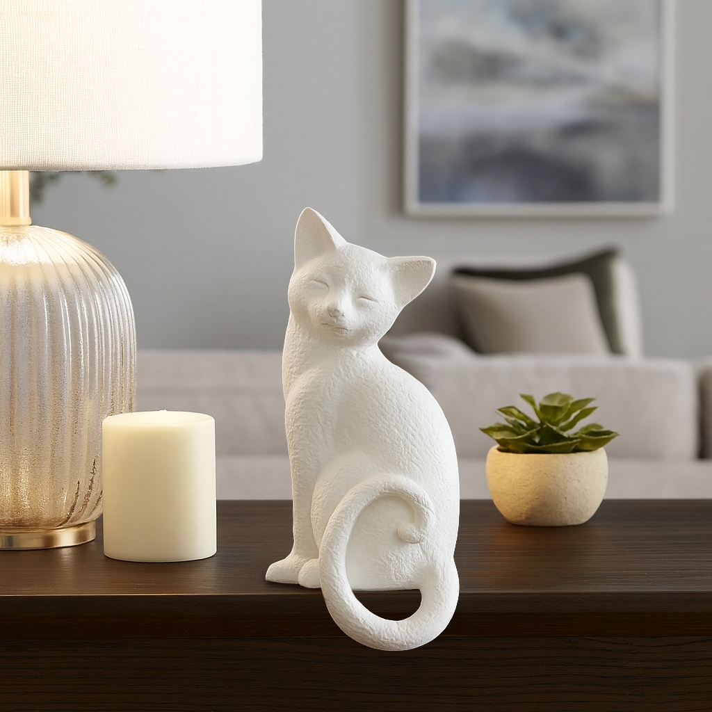 Resin Hanging Tail Kitty Decorative Figurine - White