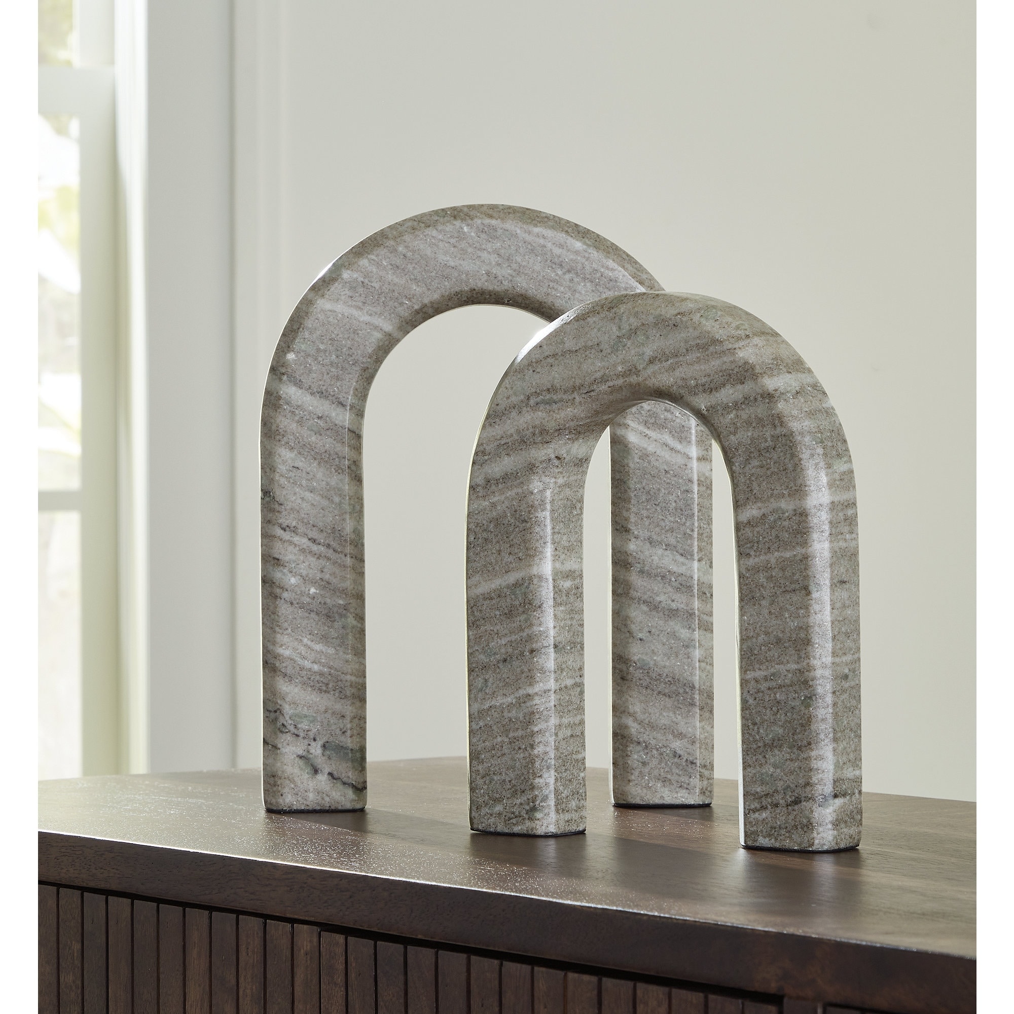 Signature Design by Ashley Keithton Taupe Sculpture Set (Set of 2) - 9.25" W x 1.75" D x 12.13" H