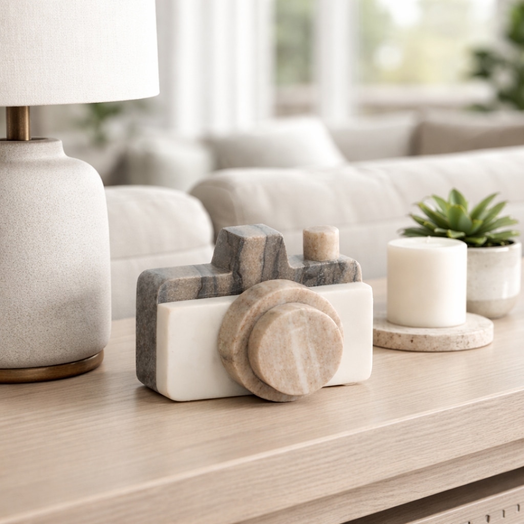 Marble Novelty Decorative Camera Figurine - Multicolor, 5" - 5.0"