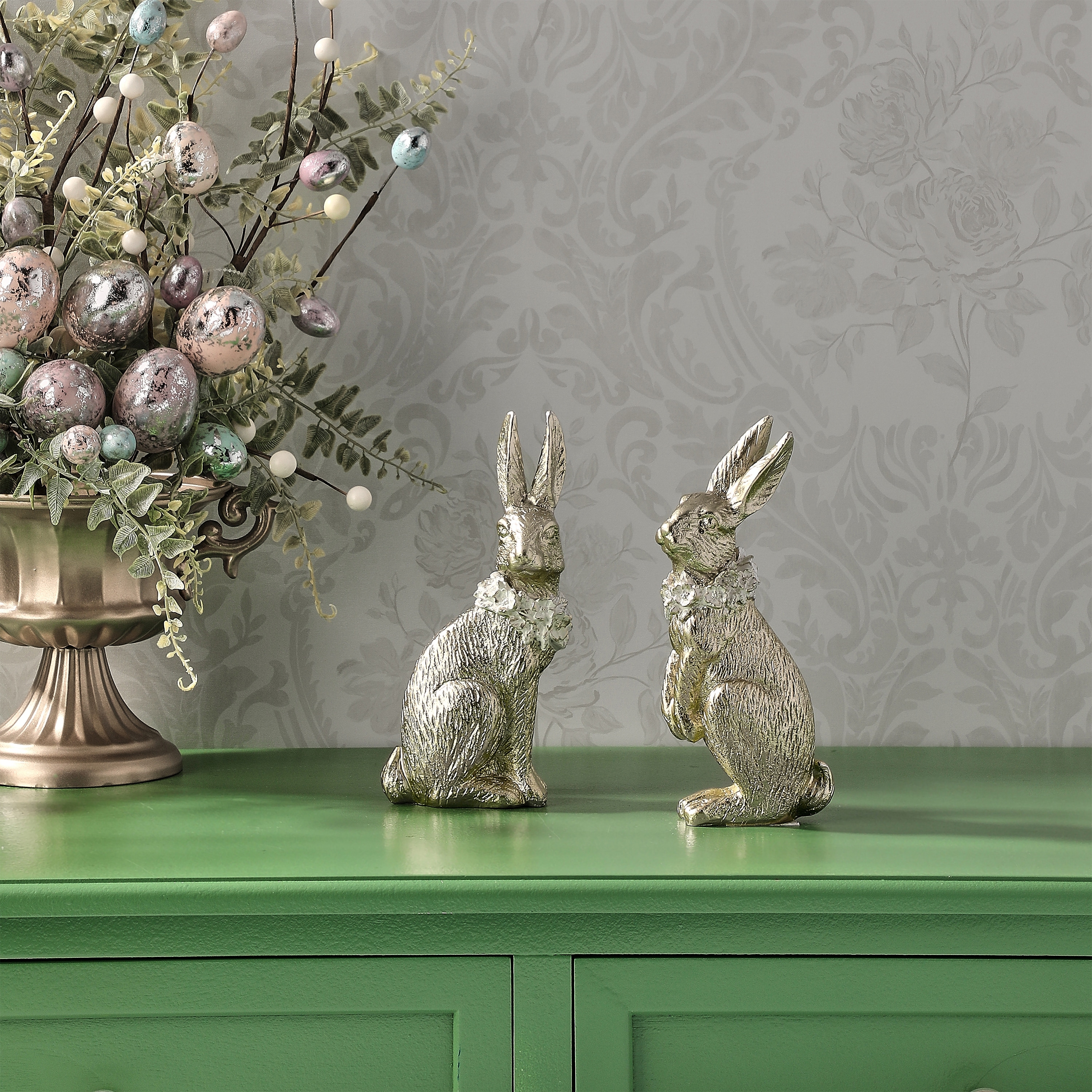 7.5" Resin Bunny With Floral Collar Set of 2