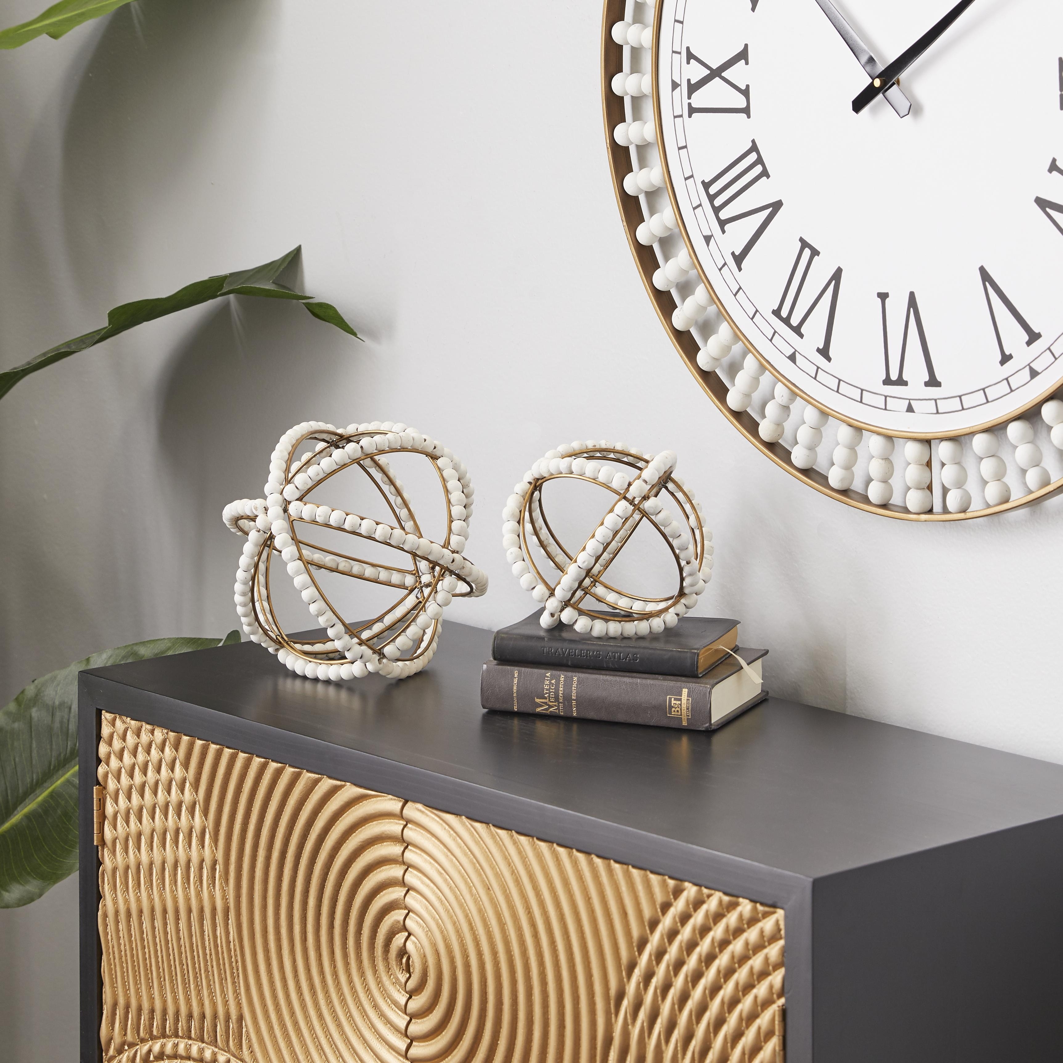 White Metal Handmade Beaded Geometric Decorative Sculpture (Set of 2)