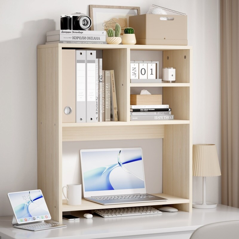 Desktop Shelf Bookshelf Storage for College Dorm Office Home, White