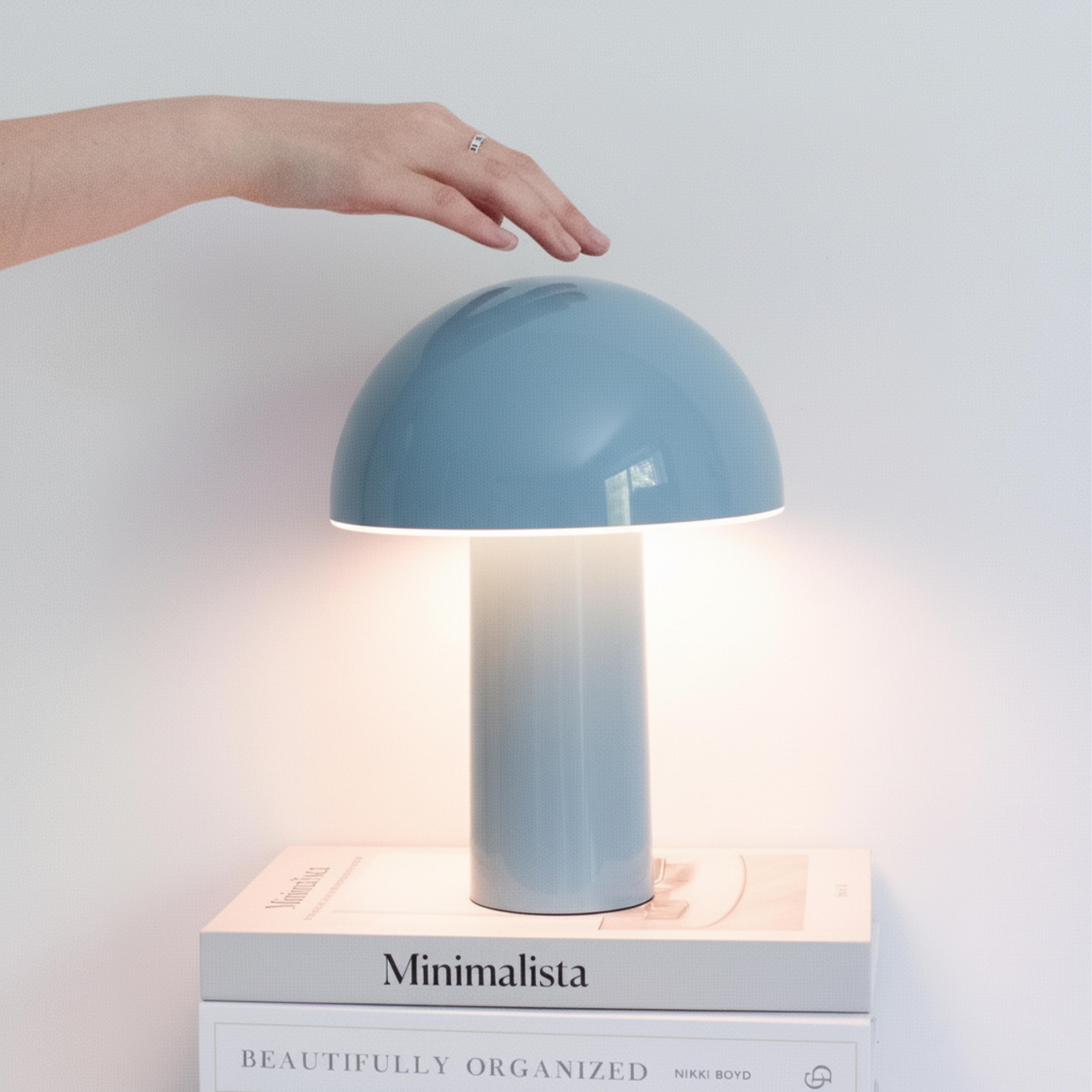 Brightech Celia 10.24 in LED Glossy Modern Round Dome Dimmable Cordless Portable Rechargeable Bedside Nightstand Desk Lamp