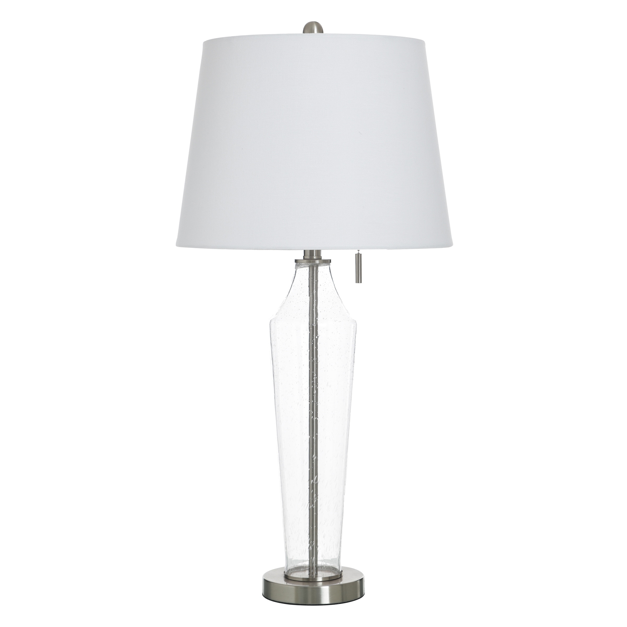StyleCraft Glass Table Lamp - Clear Seeded & Brushed Steel - White Shade