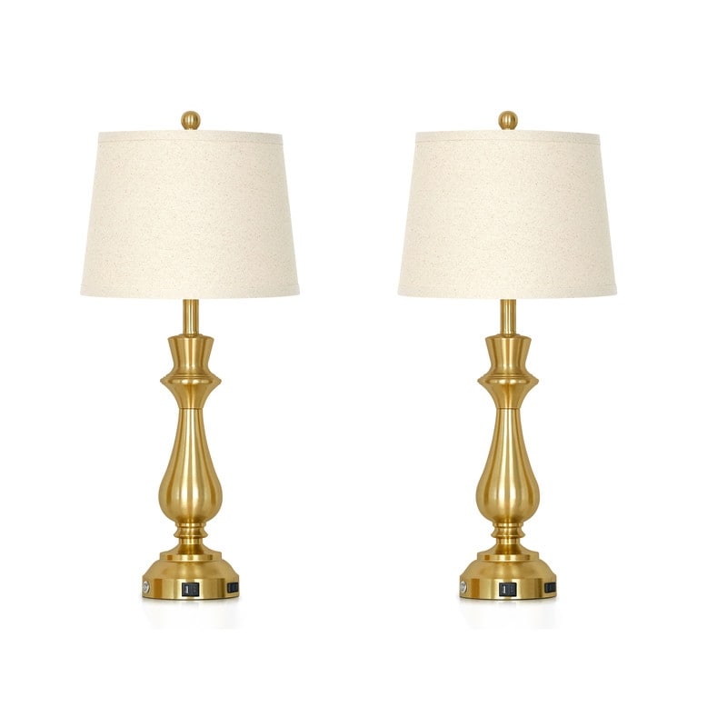 29.5'' Bedside Classic Polished Brass Table Lamp with USB-A USB-C Charging Ports AC Outlet & Touch Dimmer(Set of 2)