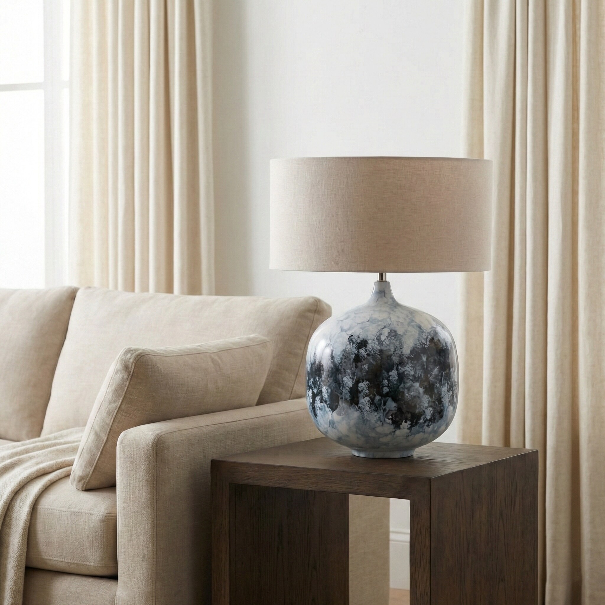 Porch & Den Atlantic Marble Base/White Fabric Shade Table Lamp