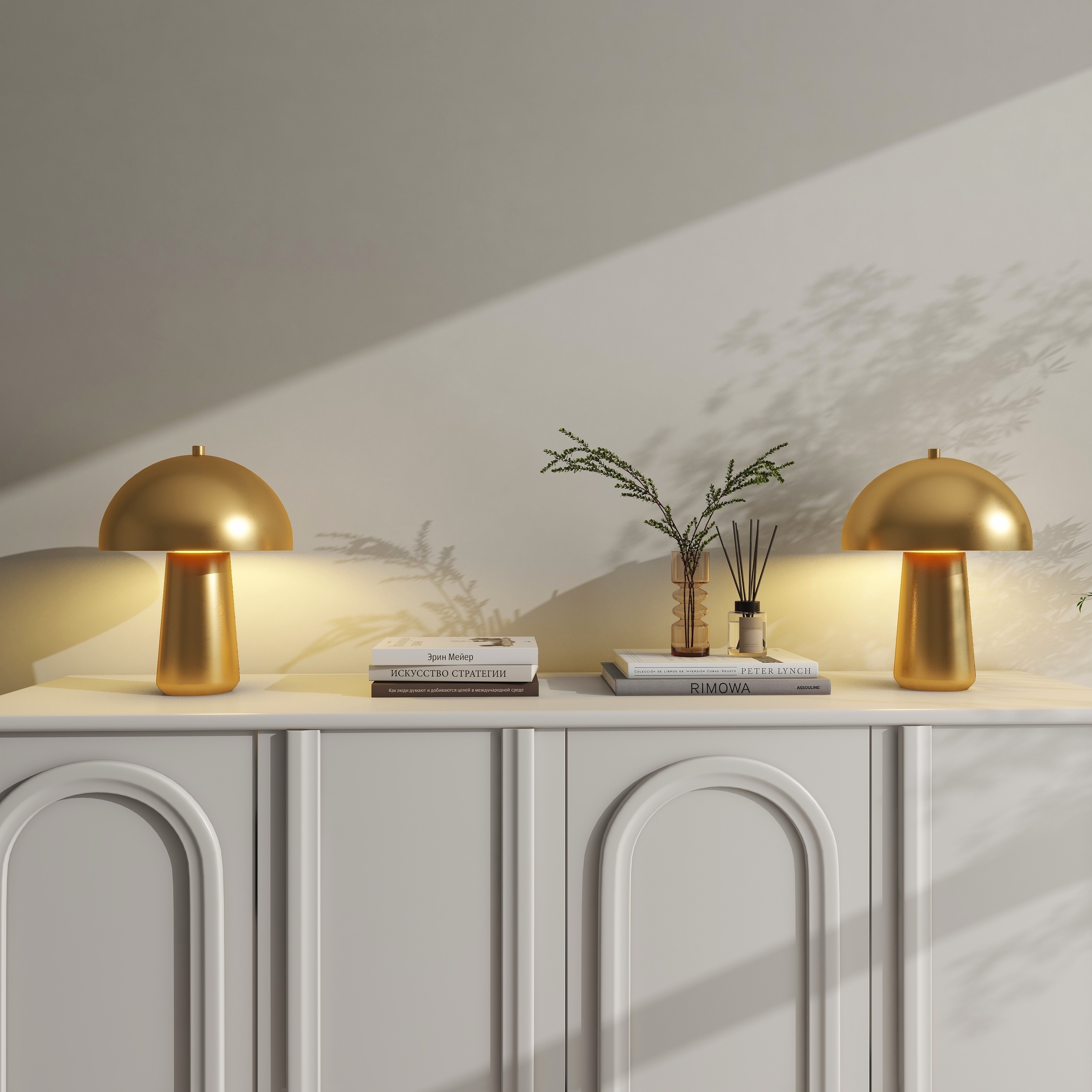 Tamara Day for Stylecraft Edmund Table Lamp - Polished Brass & Pearl Blush - Off-White Shade