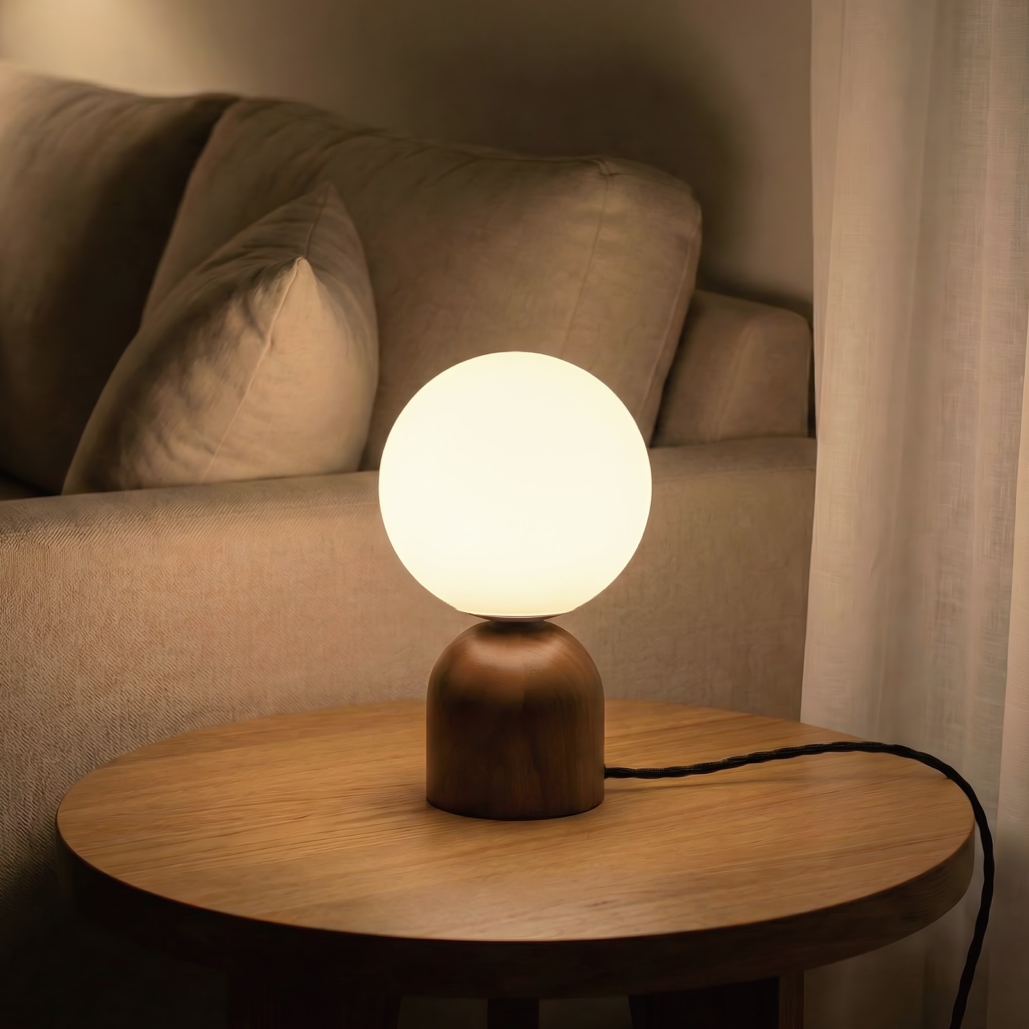 9.84'' Modern Opal Glass Globe Table Lamp with Solid Rubber Wood Base, Rotary Dimmer Switch (Bulb Not Included)