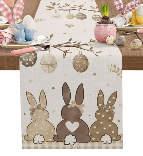 Easter Bunny Linen Table Runner Rustic Spring Farmhouse Table Decor 01 150x33cm 59x13inch