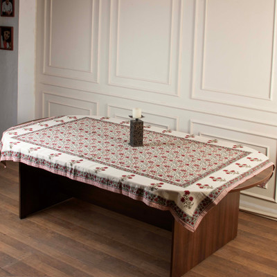'Handblock-Printed Floral Cotton Tablecloth in Red and Ivory'