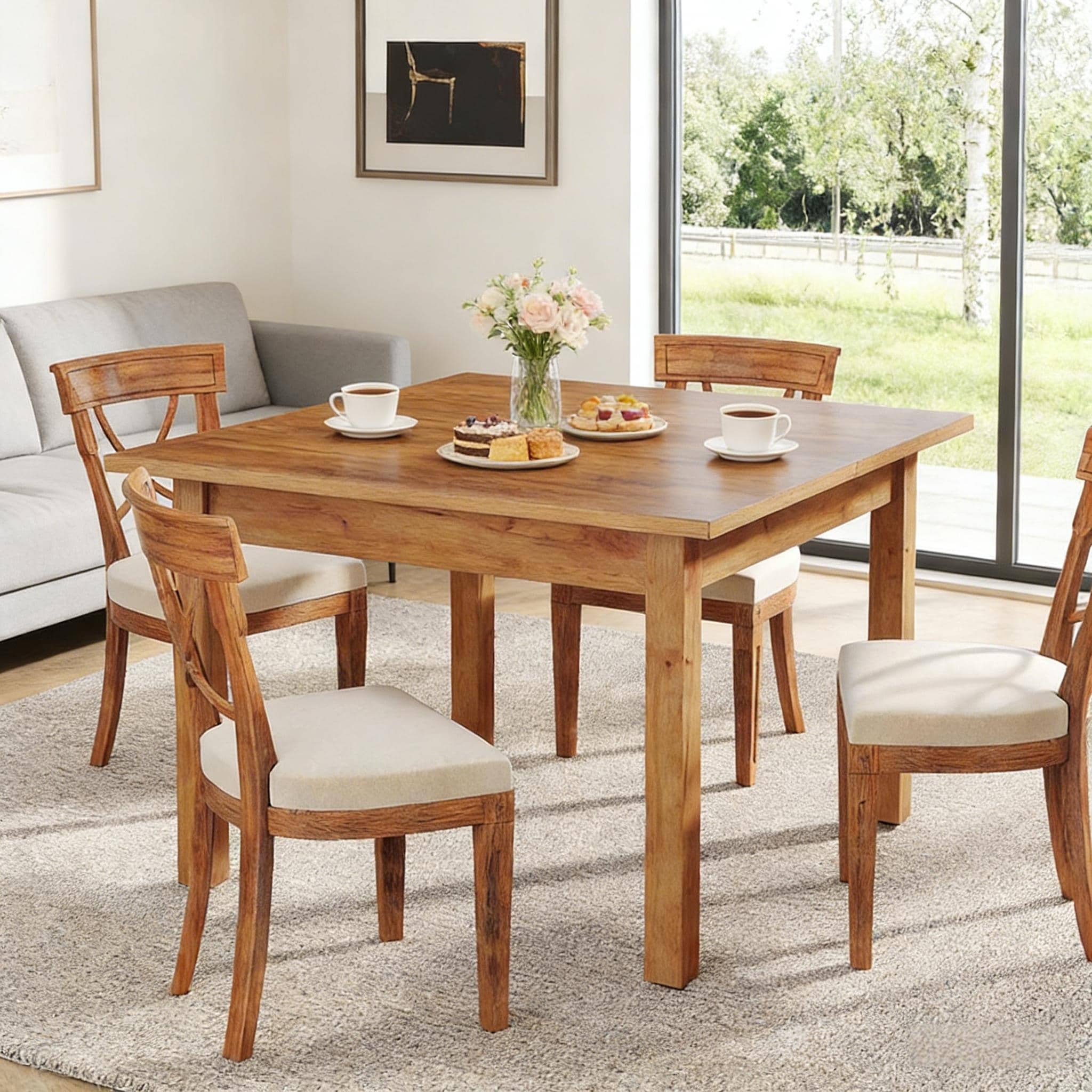 Modern Rustic Square Dining Table, Compact Kitchen Table with Solid Wood Legs for Indoor, Outdoor, Casual Coffee Table