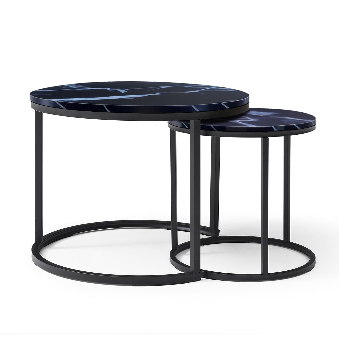 Round Coffee Table with 6.8" Thick Tabletop, Modern Drum End Table