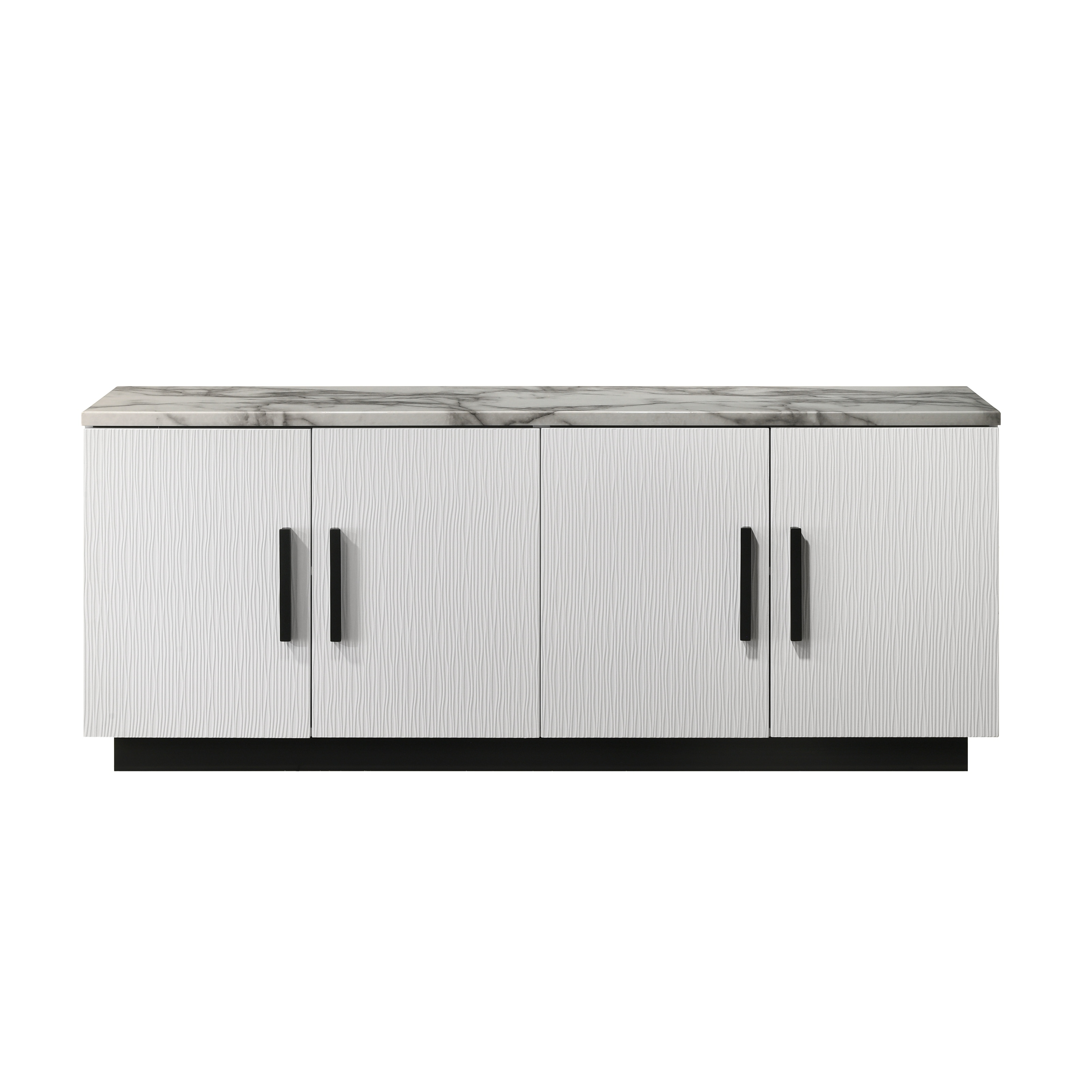 White Cabinet Console Table With Faux Marble Top For Elegant Living Room